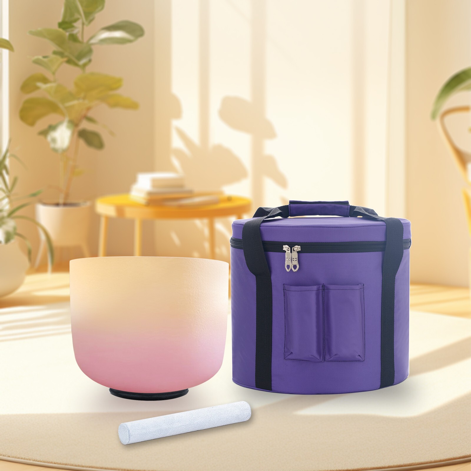 432Hz CDEFGAB Note Frosted Crystal Singing Bowl Sound Healing Bath Yoga W/Case