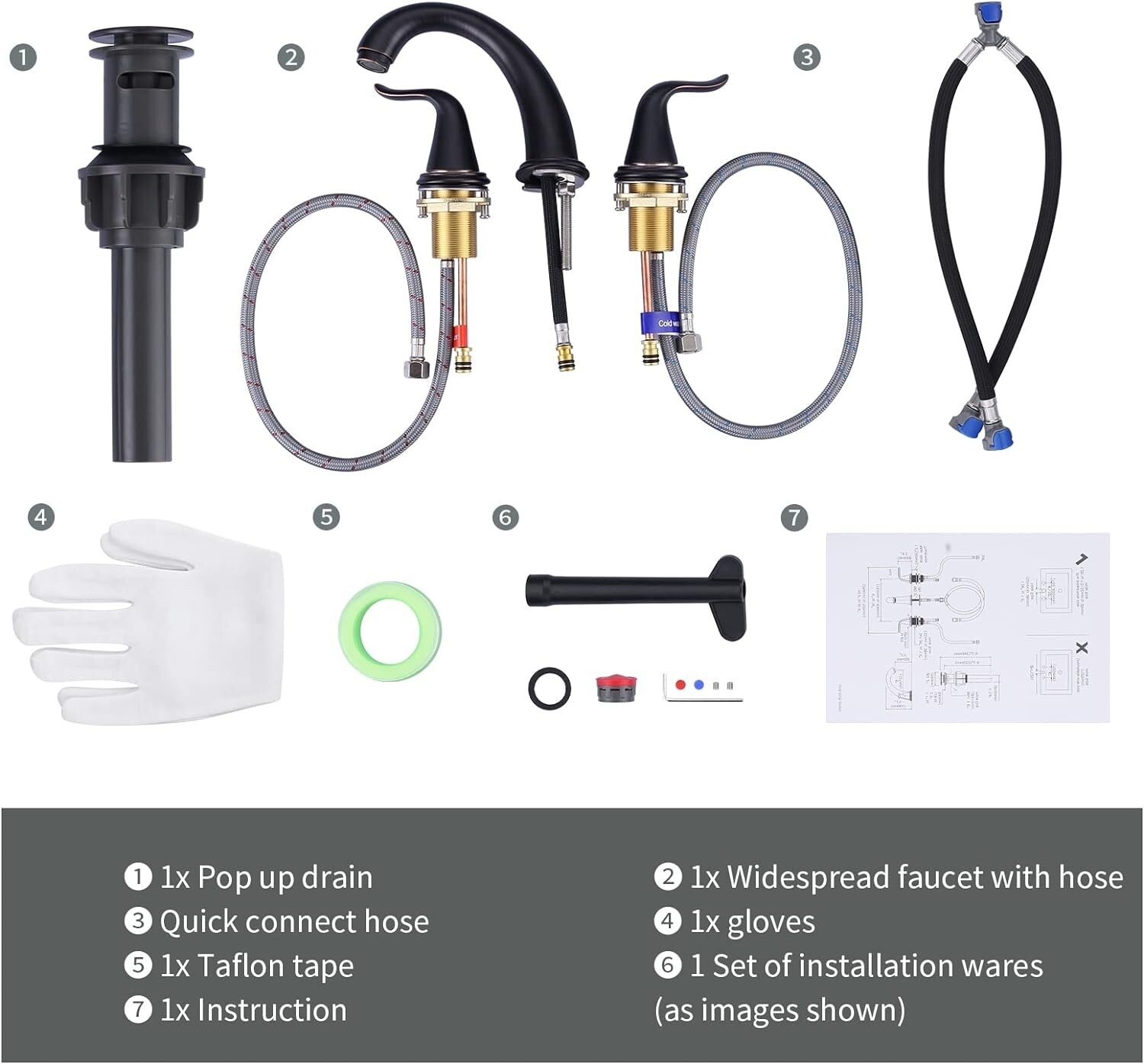 Widespread Oil-Rubbed Bronze Bathroom Sink Faucet with Pop-Up Drain - Premium...