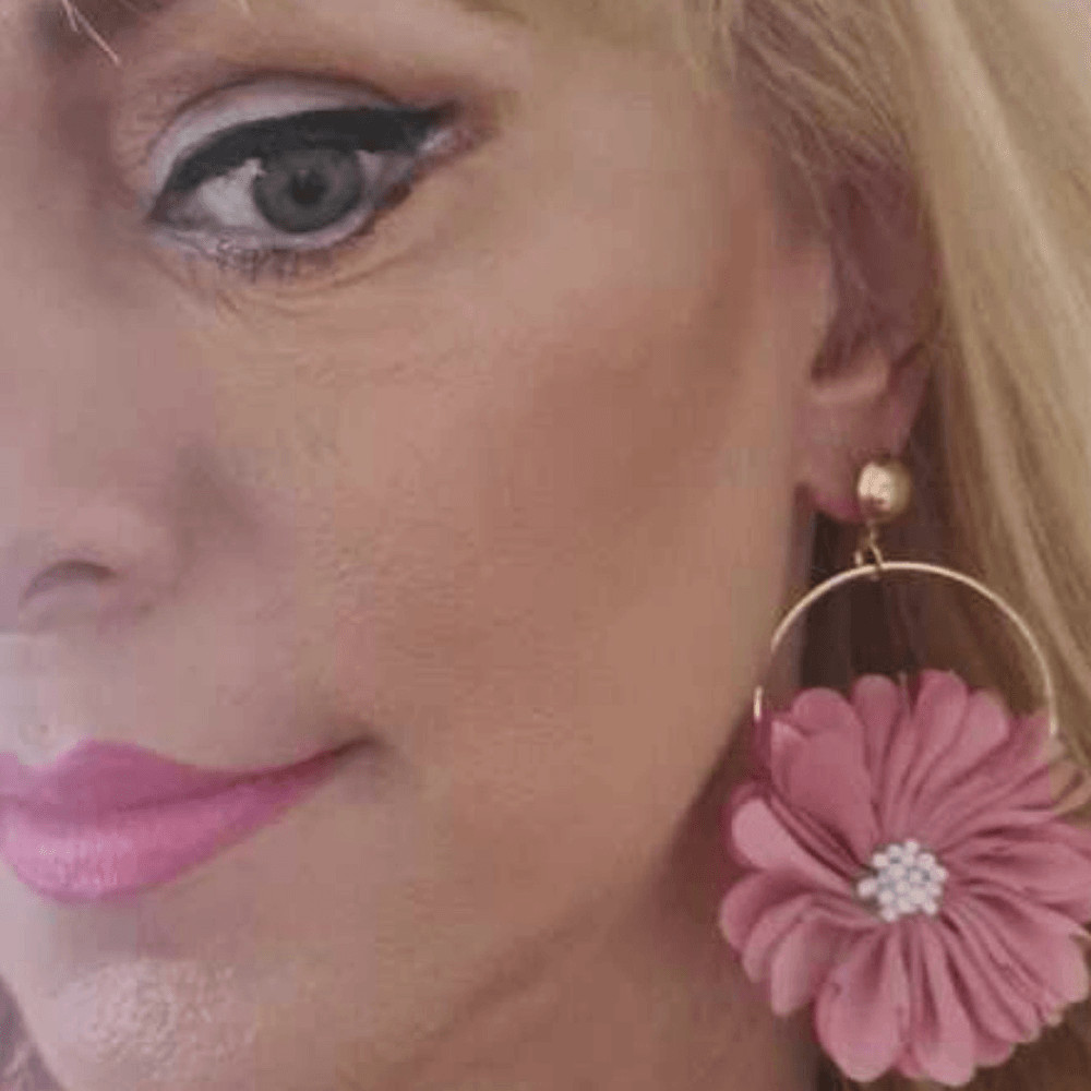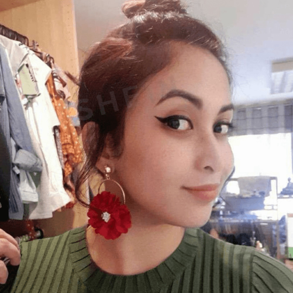 как выглядит Bohemian Gold Hoop Red Flower Earrings фото