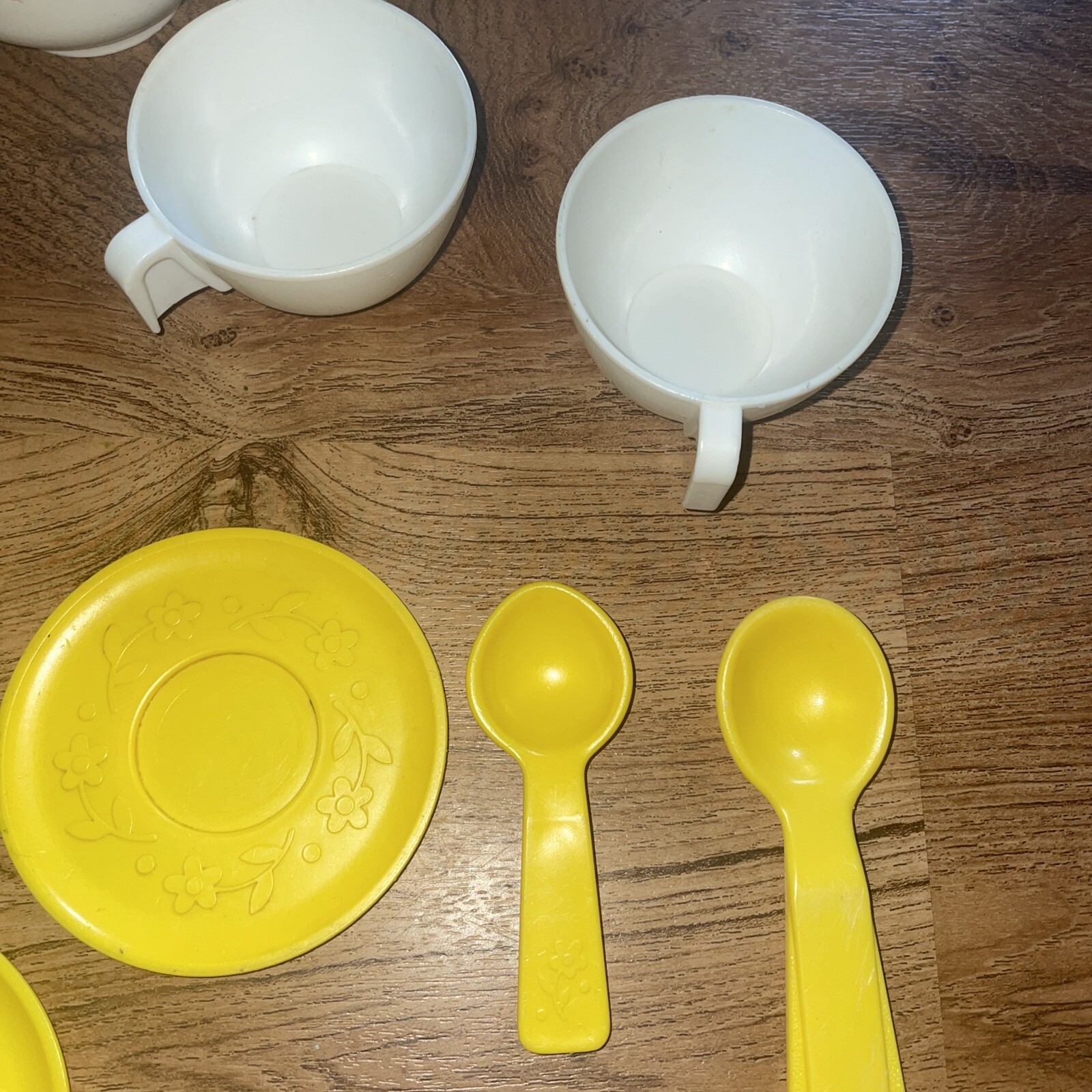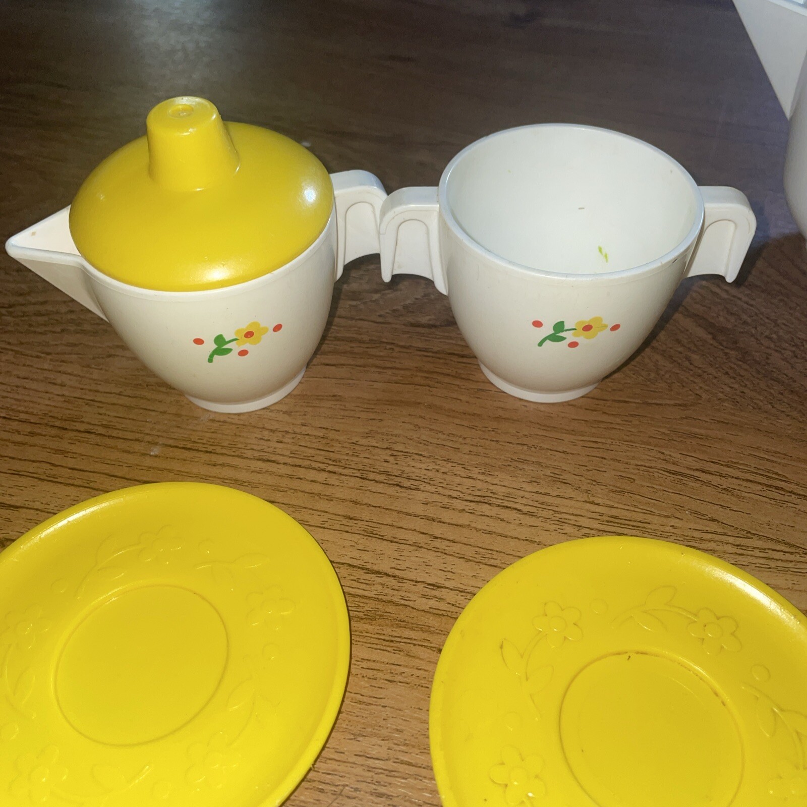 как выглядит VINTAGE FISHER PRICE FUN WITH FOOD YELLOW TEA SET 1982 фото