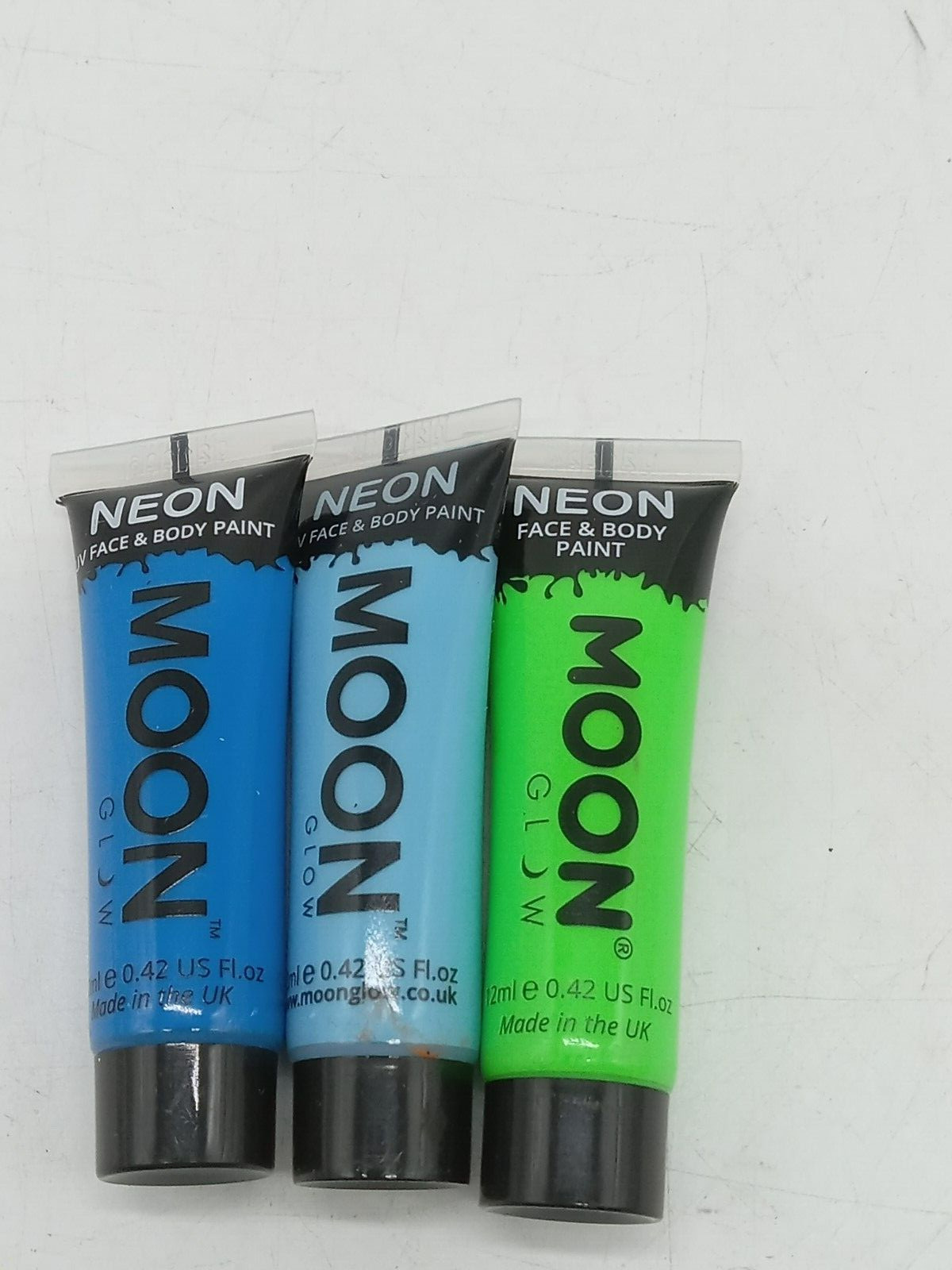 Bargain Lot of 10 Moon Glow neon uv face body paints, 0.42 fl oz. Colors
