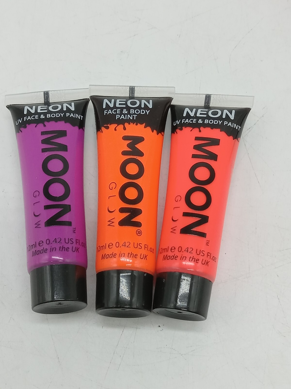 Lot of 10 Moon Glow neon uv face body paint, assorted colors, 0.42 fl oz