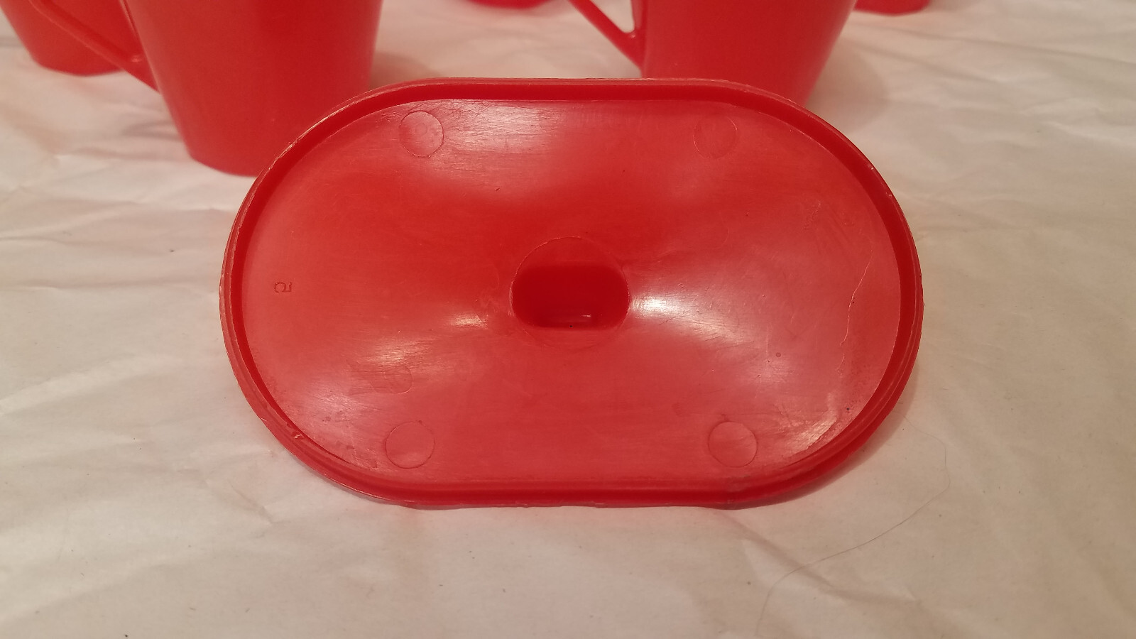 как выглядит Lot of 7 Vintage Irwin Plastic Childs Dishes Made in USA Red фото