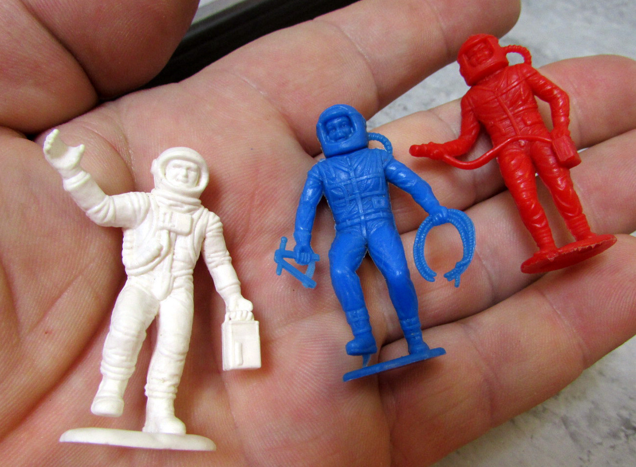 как выглядит vintage MPC plastic toy Astronaut figures, set of 3, awesome toy decor spacemen фото