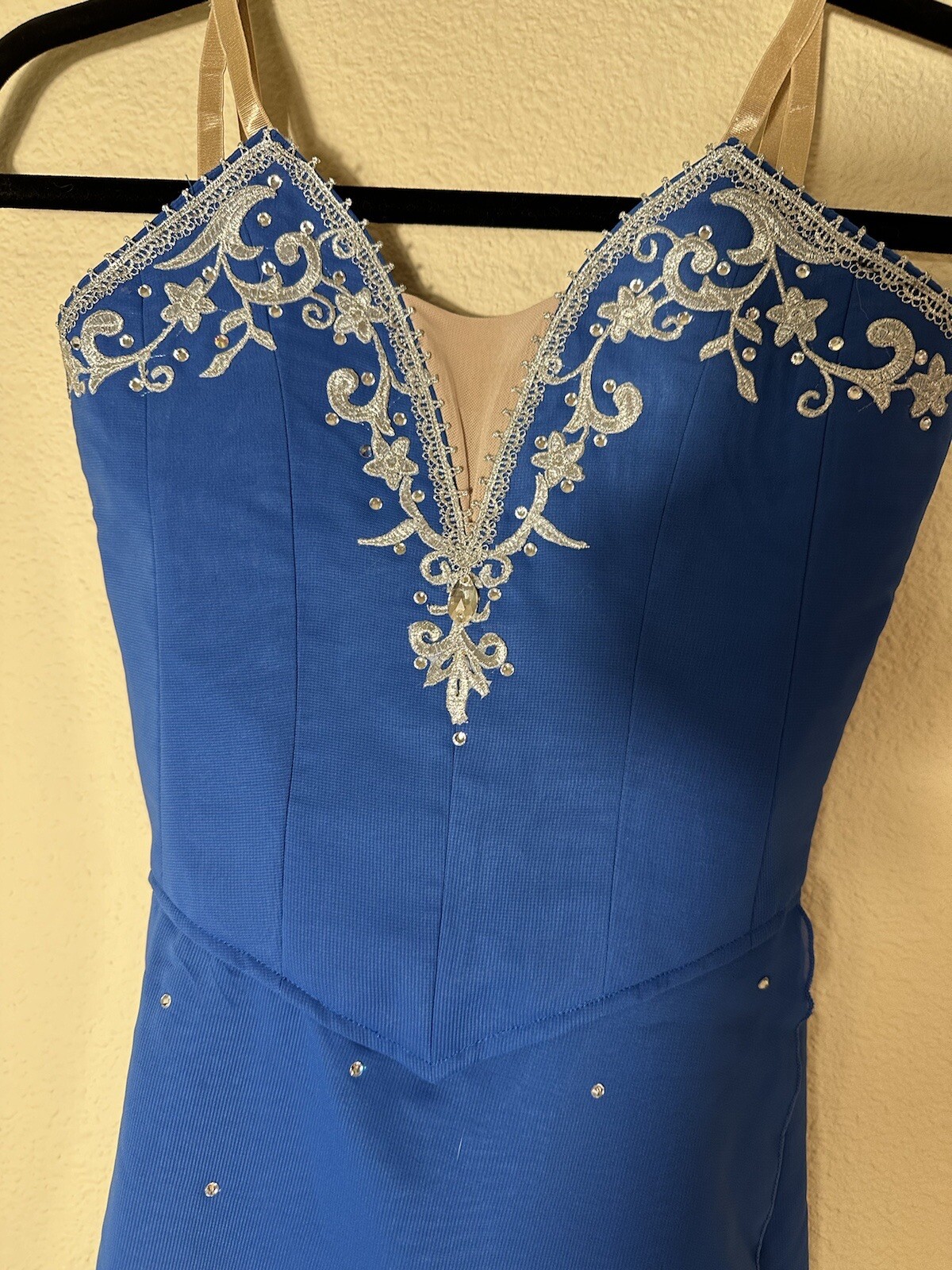 как выглядит Blue Cupid Fairy Lyrical Ballet Skate Dress Costume Free Wings Girls 11 12 YAGP фото