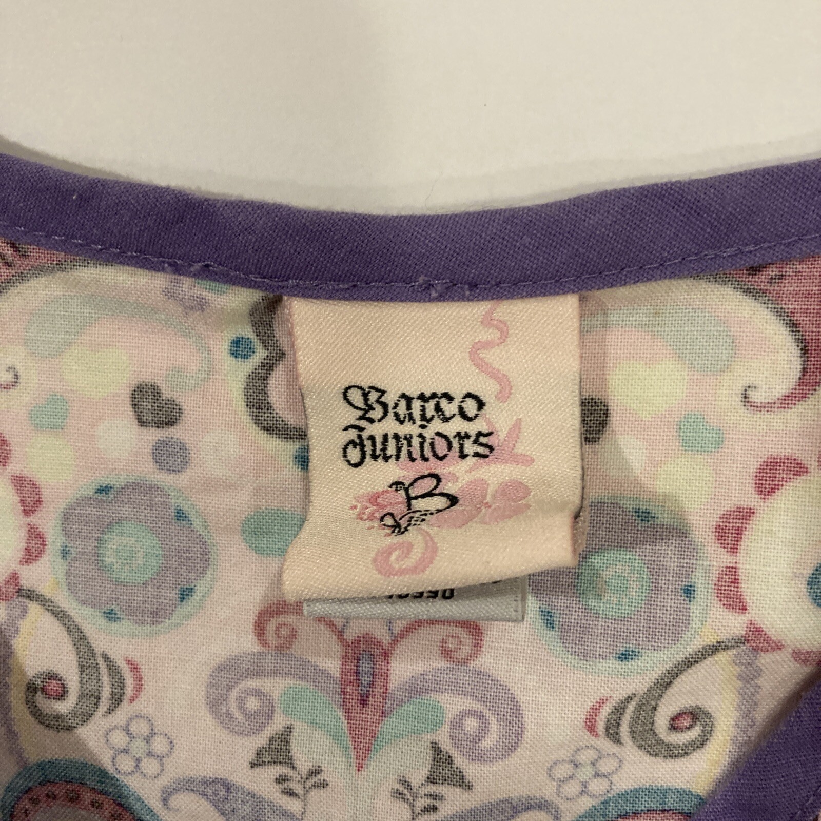 Barco Juniors Paisley Hearts Floral Pink Multicolor Scrub Top Ruffled Trim Sz S
