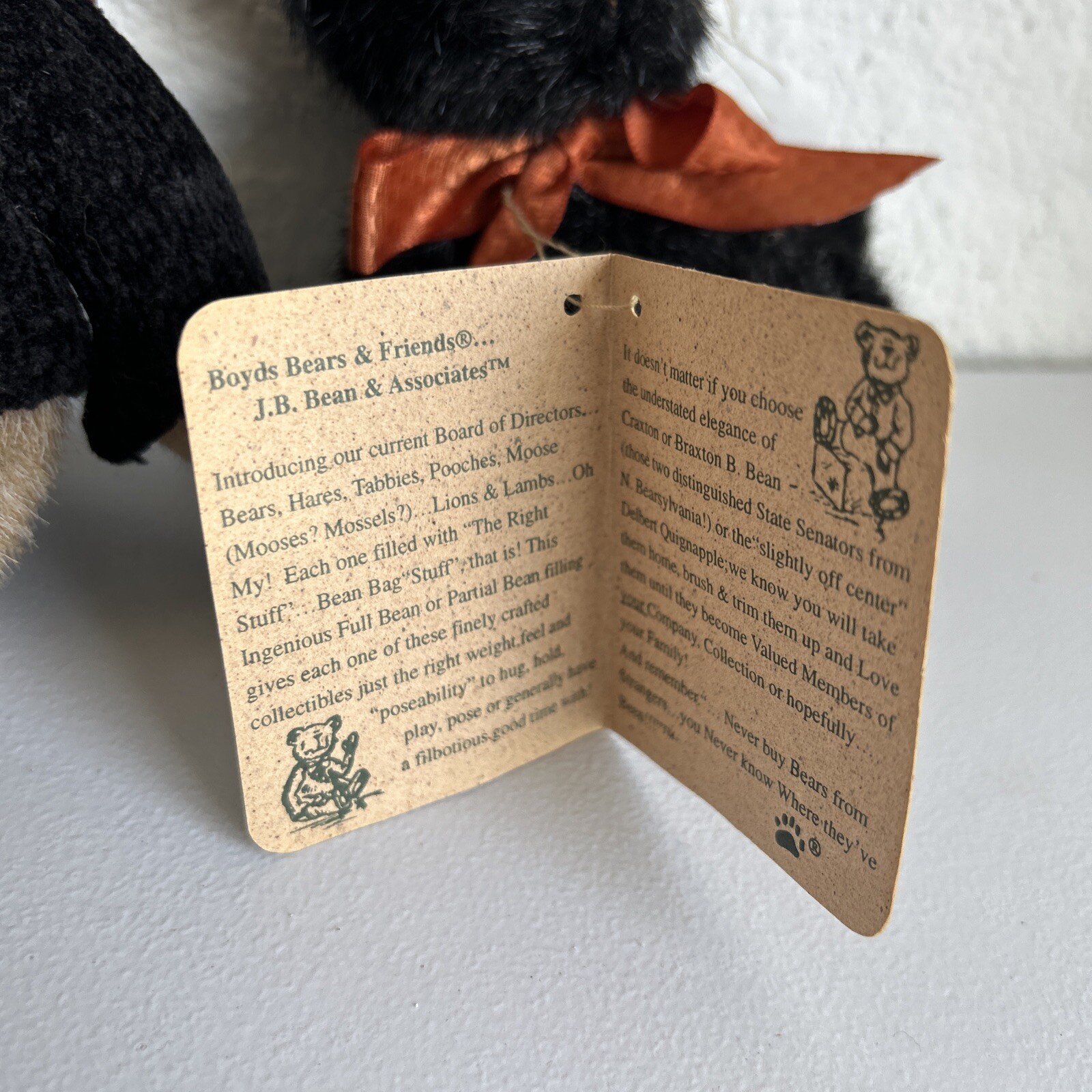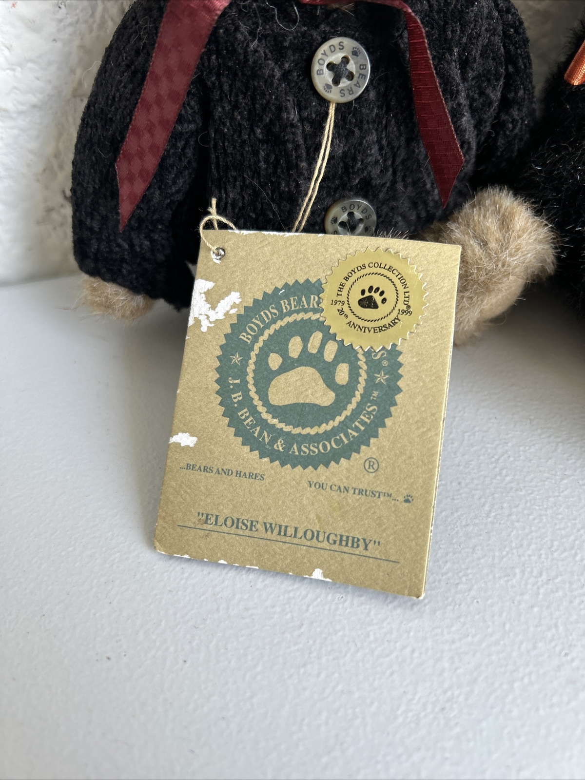 • Vtg Boyds Bear Plush Eloise Willoughby Teddy Bear 7" With Black Cat