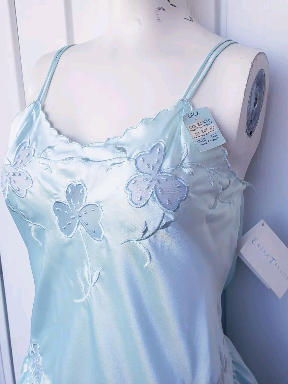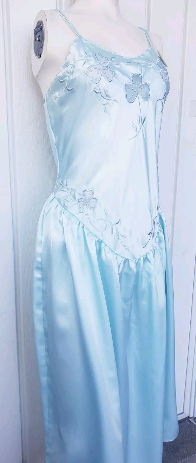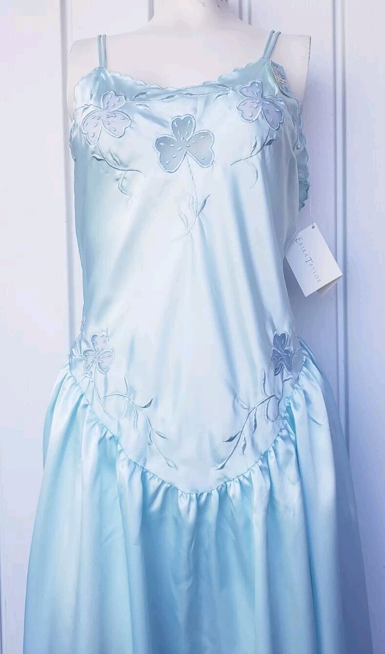 как выглядит Vintage Erika Taylor Intimates Satin Blue Ice Nightgown Dress Size Medium NEW фото
