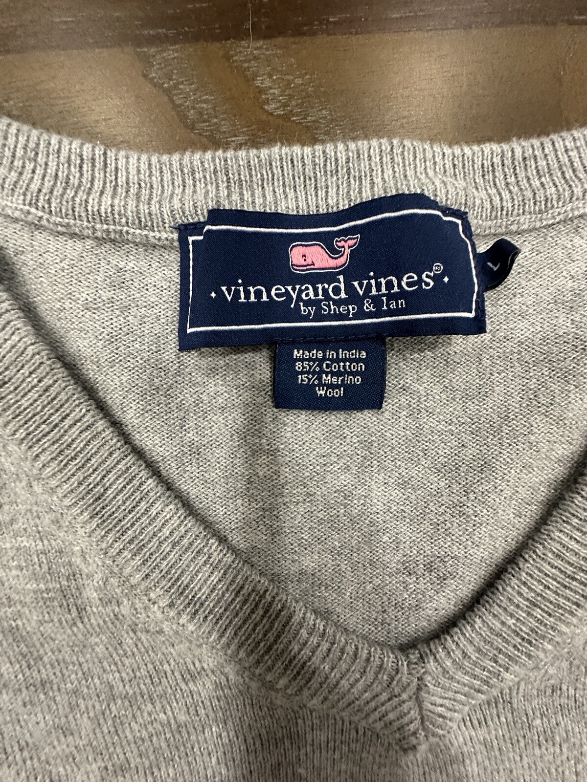 как выглядит Vineyard Vines Sweater Mens Large Gray V-Neck Wool Blend Long Sleeve Pullover фото
