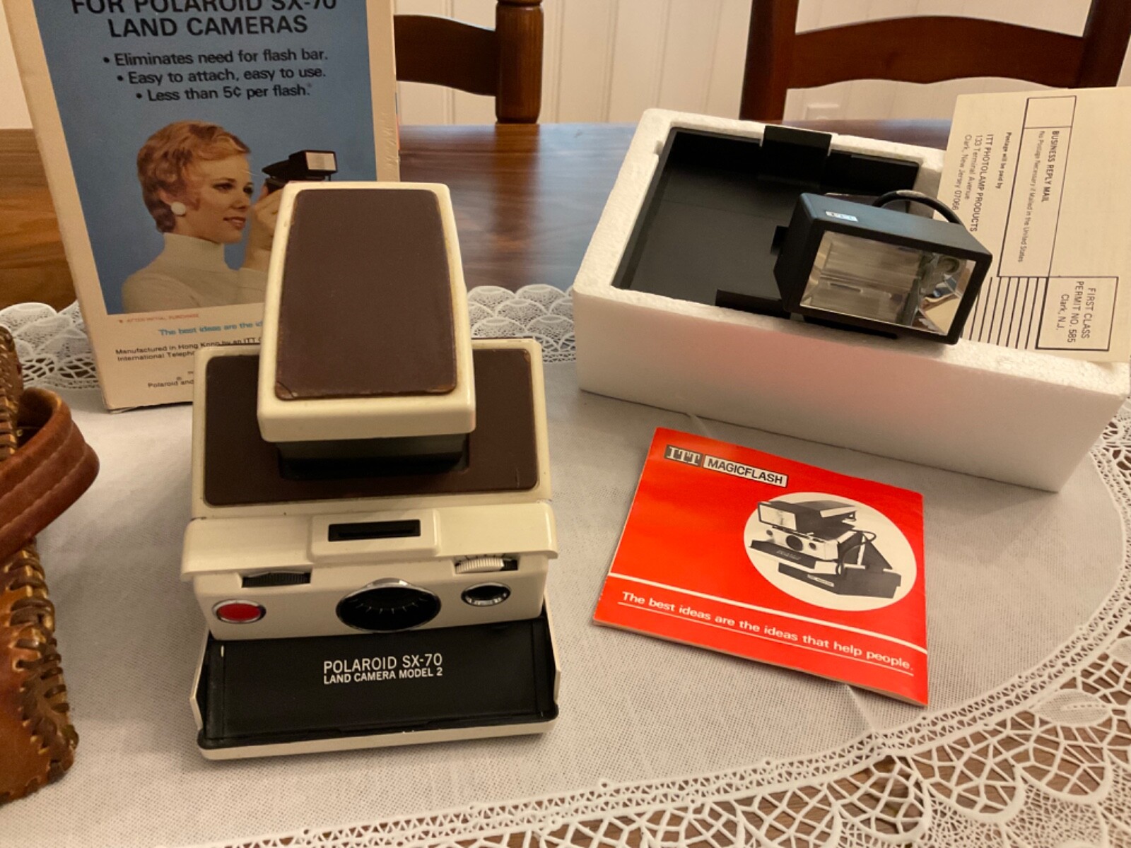 как выглядит Vtg. Polaroid SX-70 Land Camera Model 2 W/ Case Flash in Box NICE LOT фото