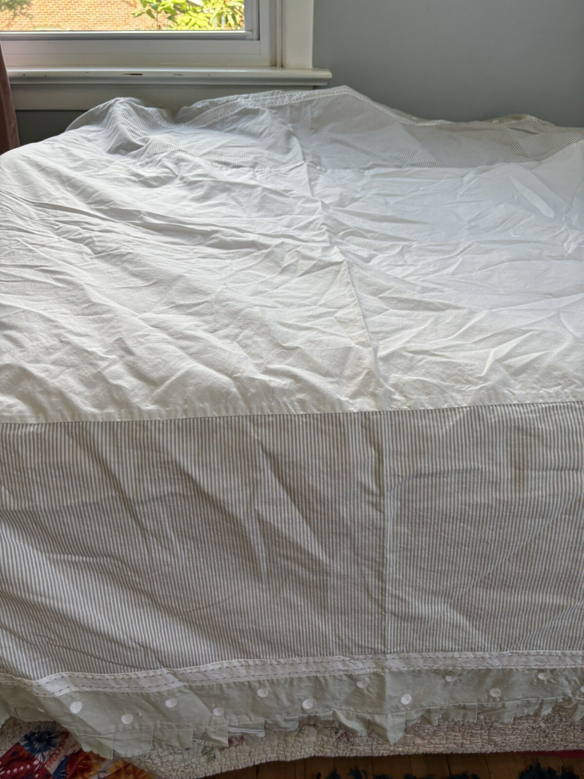 Pottery Barn Kids Crib Skirt PBK Taylor Dot Stripe Baby Dust Ruffle Gray Stain