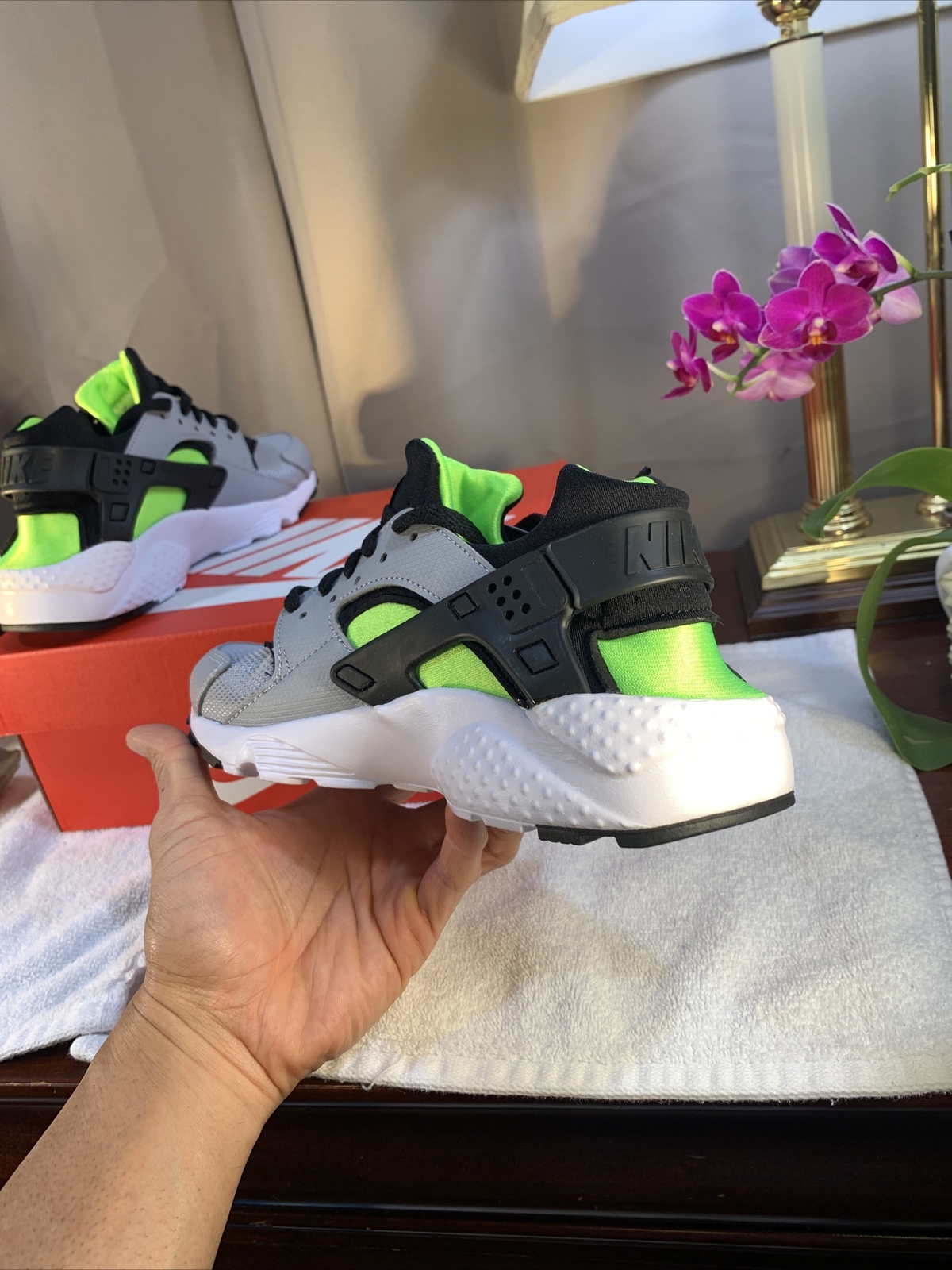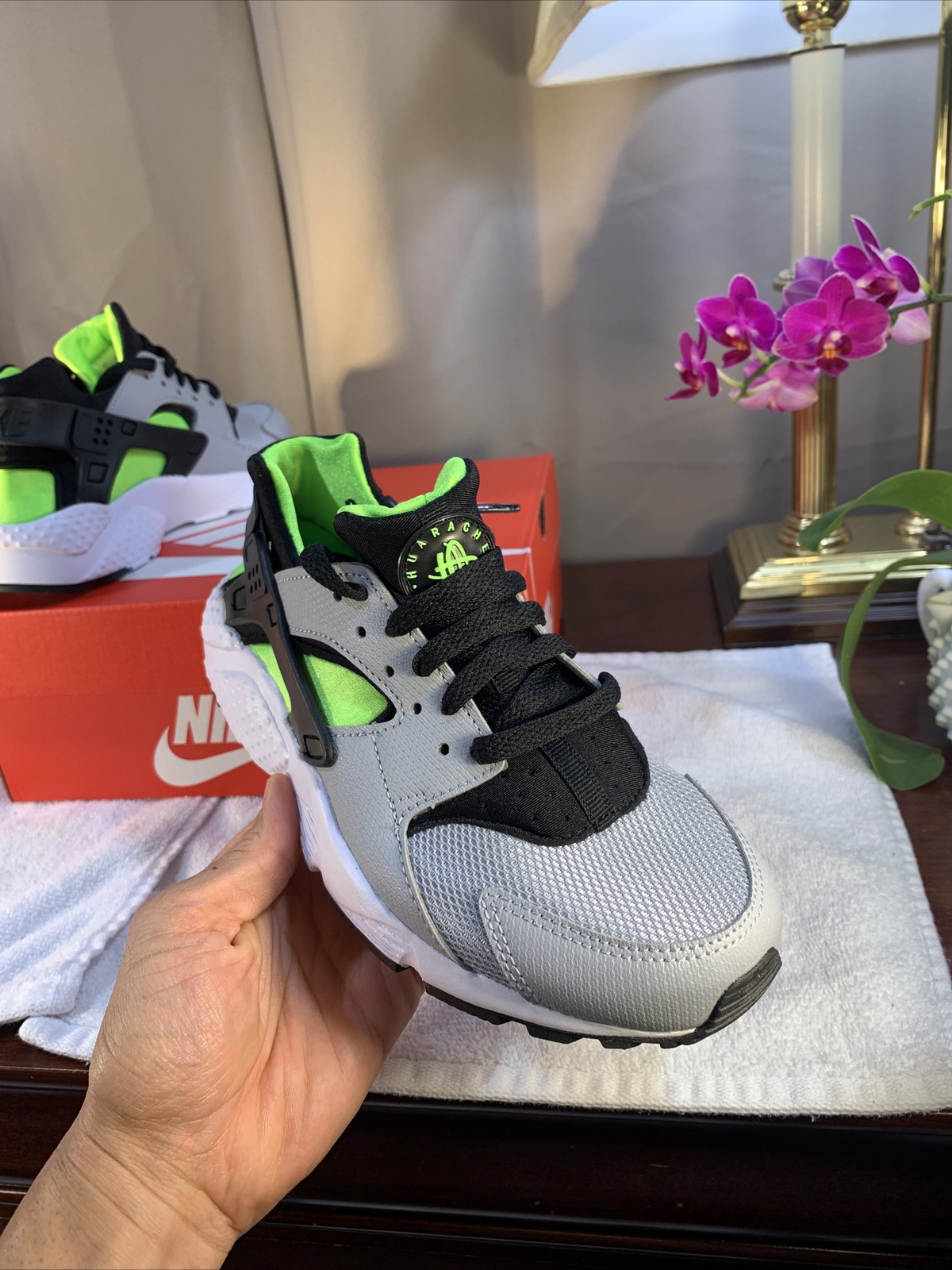 как выглядит Nike Air Huarache Boys Youth Athletic Shoes Electric Green NEW Box Size 5y фото
