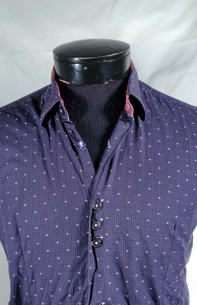 как выглядит Bogosse Shirt Short Sleeve Button Blue Micro Check Mens Sz 1 XS фото