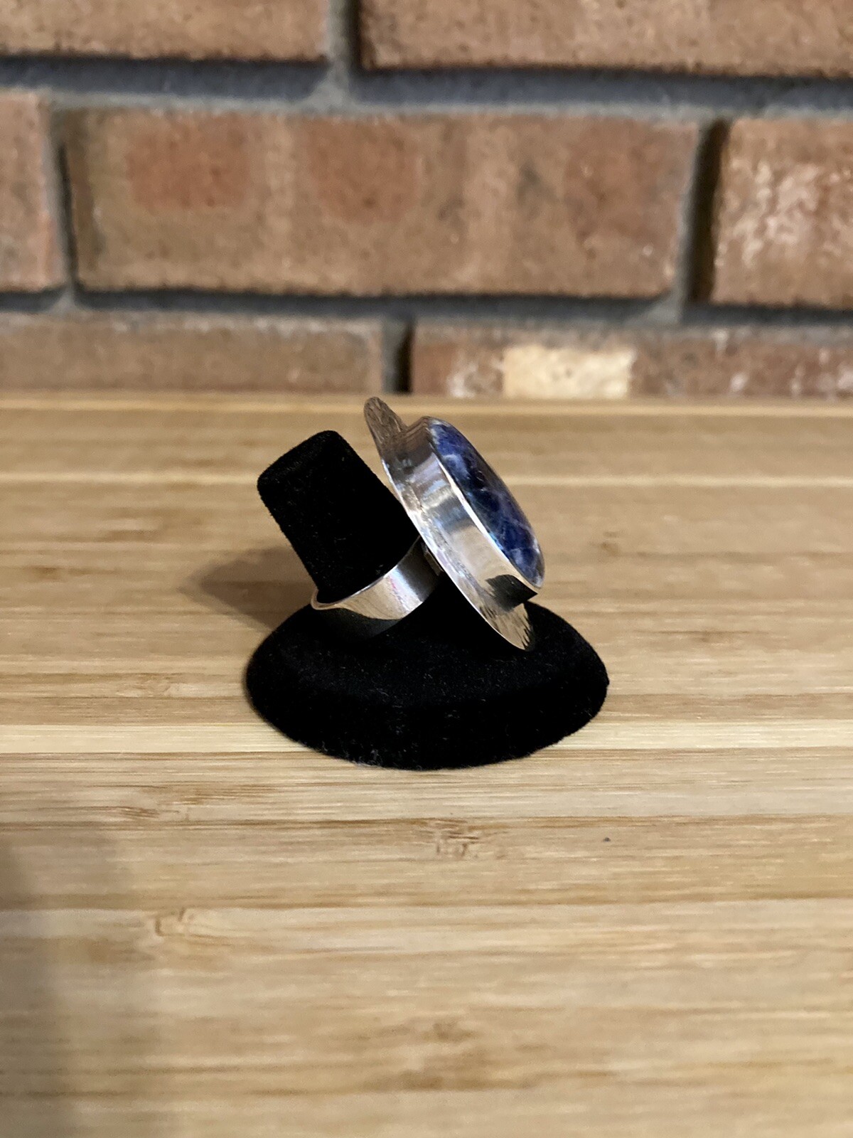 как выглядит Womens Large Adjustable Blue Stone Sterling Silver Statement Ring 950 Mexico фото