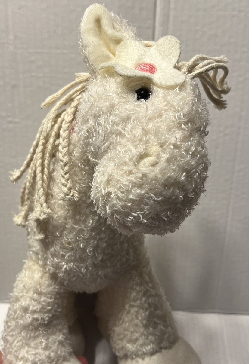 Happy Horse Plush White Horse Fuzzy Pony - Pink flowers Stuffed Animal Braids