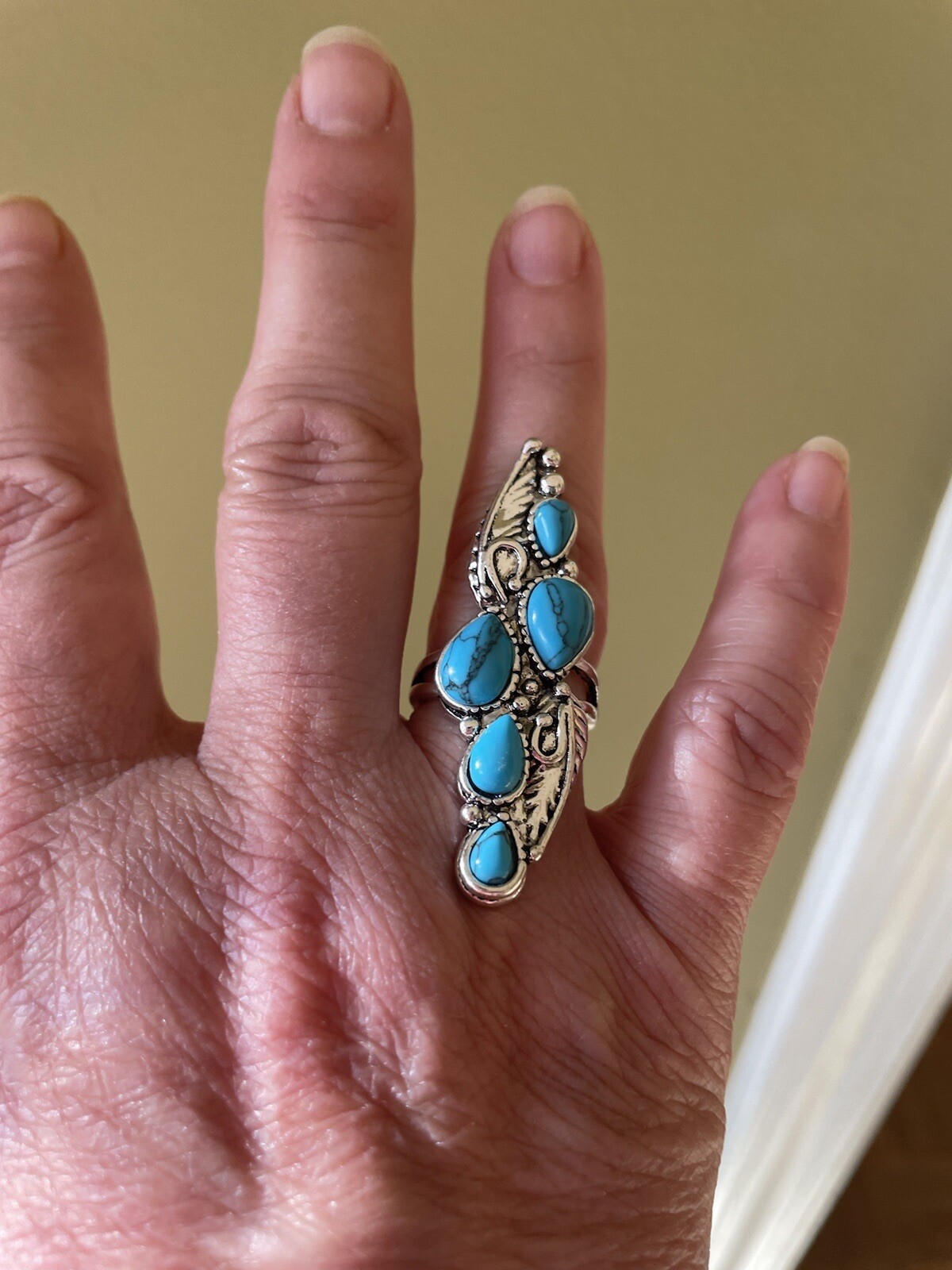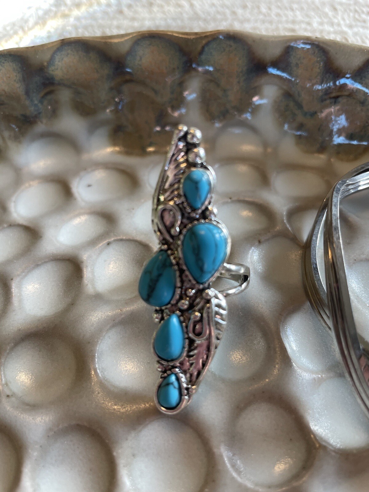 как выглядит BOHO Silver Elegant Charms Turquoise Ring Sz 6.5 NWOT фото