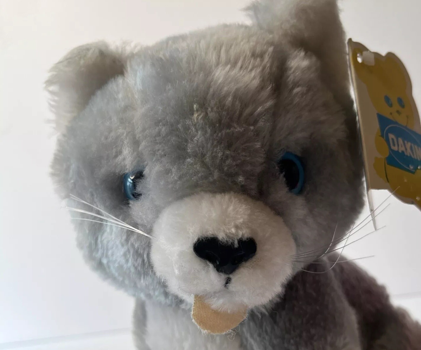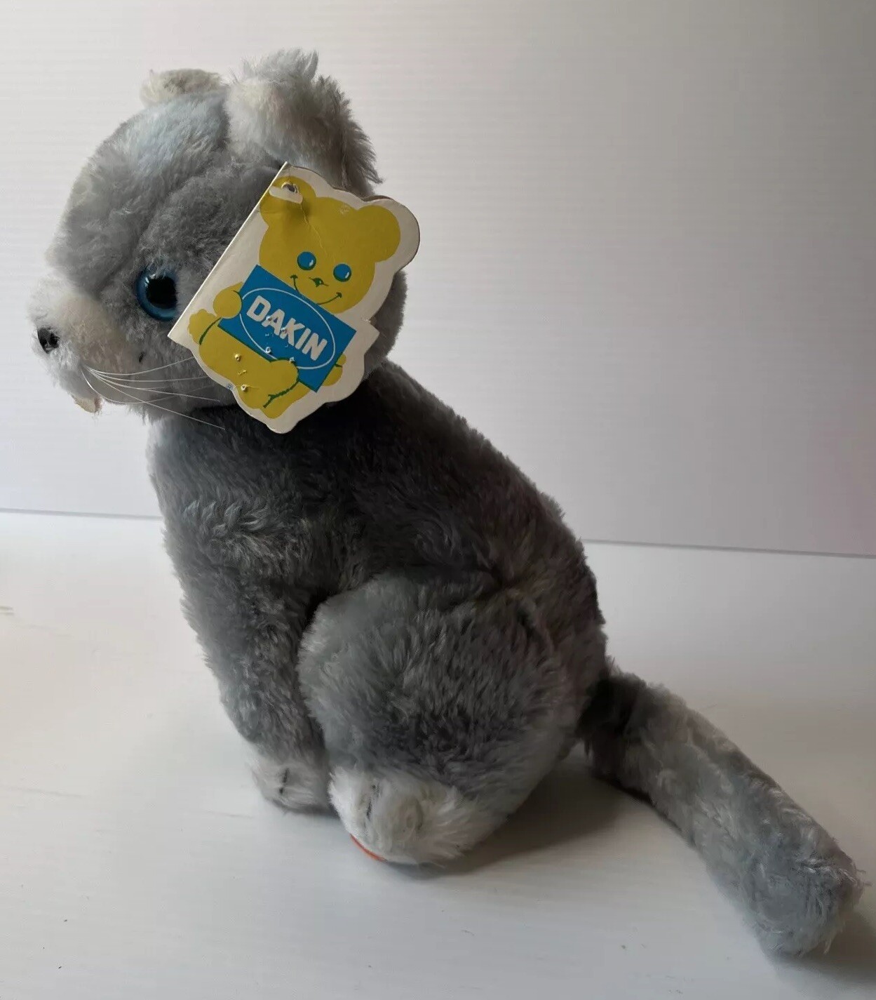 Vintage Dakin Cat Kitty Stuffed Grey Plush Tongue 1977 Nature Babies Catnip
