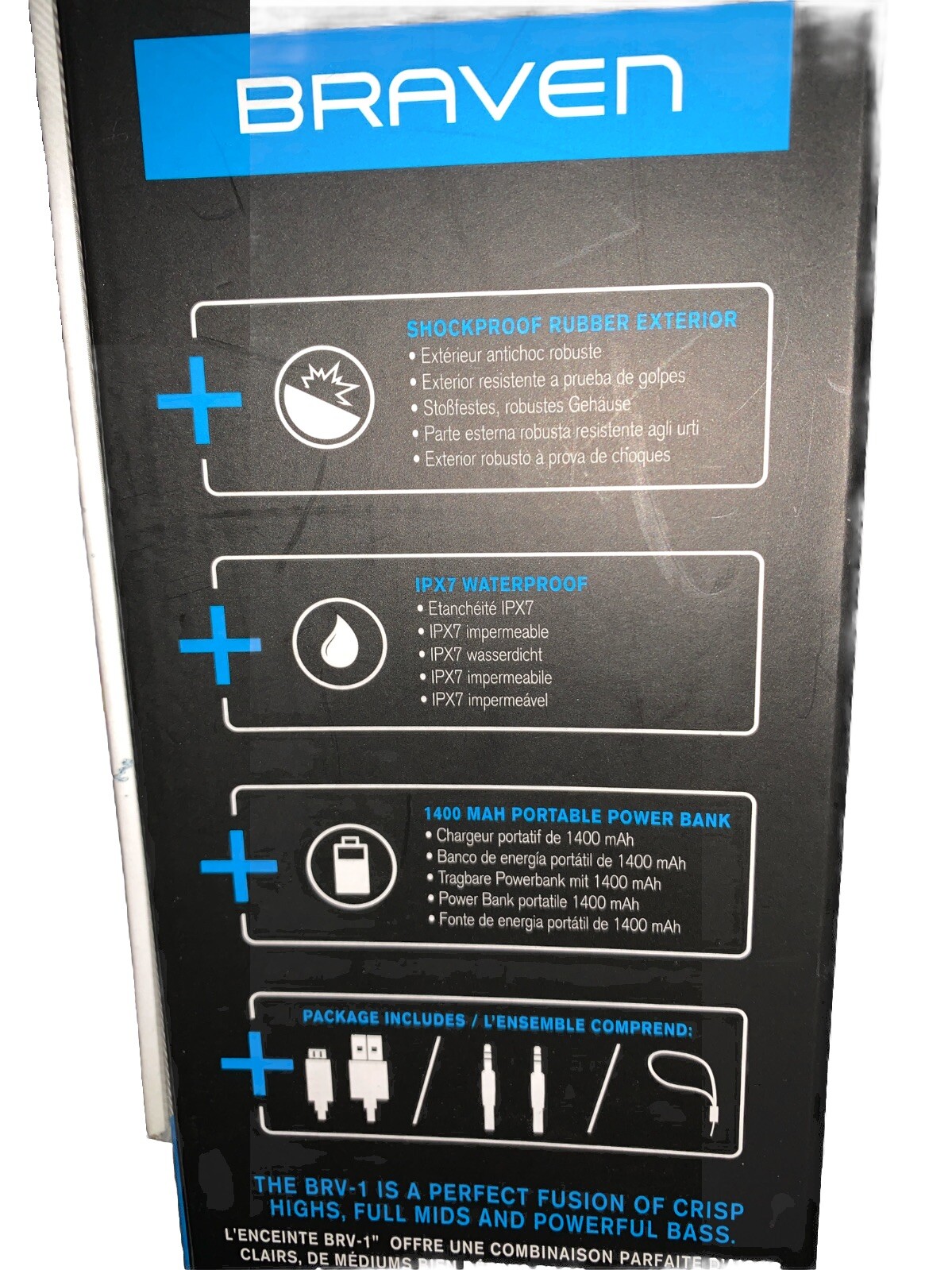 Braven BRV-1 Bluetooth Waterproof Rugged Wireless Speaker - Black and Cyan