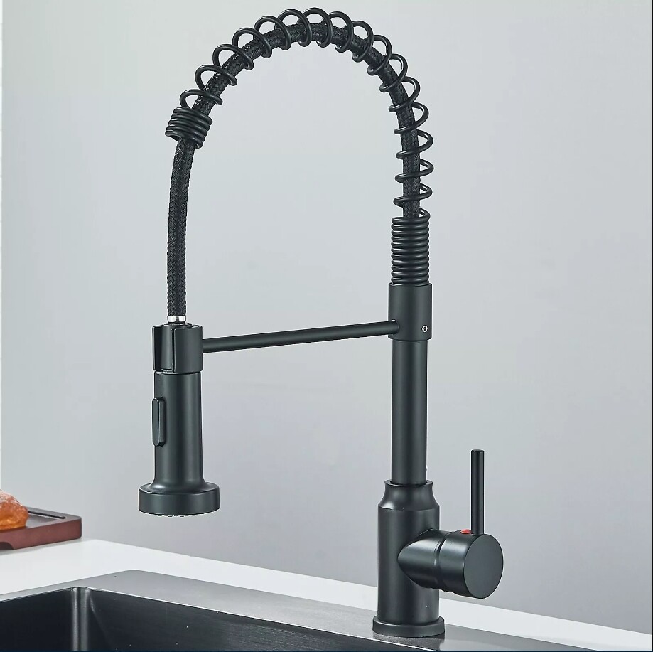Modern Kitchen Sink Faucet with Pull Down Sprayer Single Handle Swivel Mixer Tap