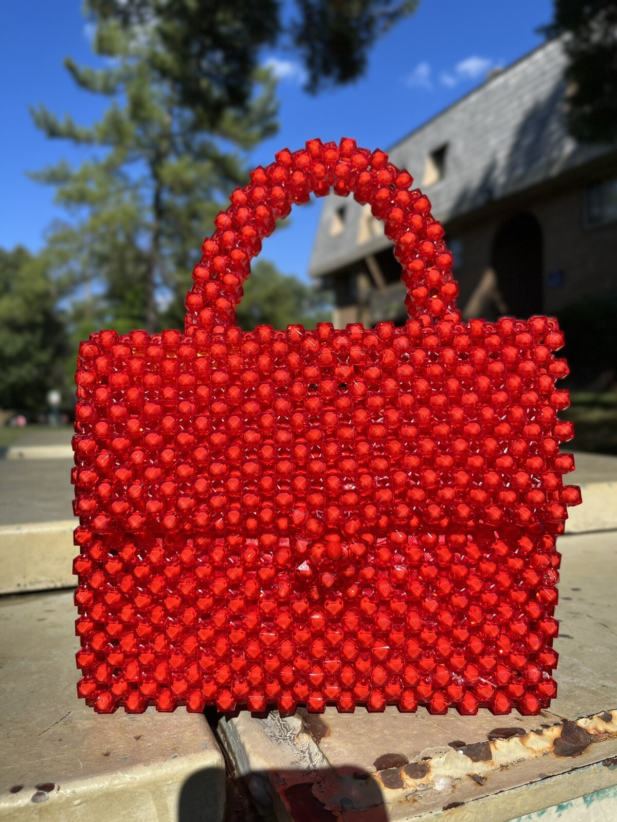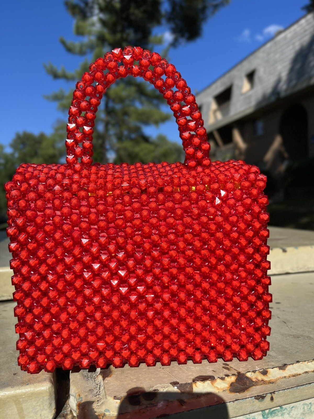 RED BEADED CRYSTAL HANDBAG