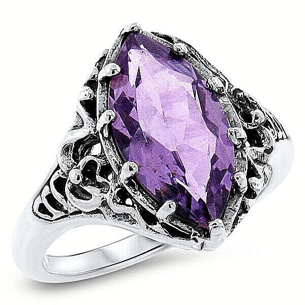 GENUINE AMETHYST 925 SOLID STERLING SILVER ANTIQUE STYLE FILIGREE RING 573