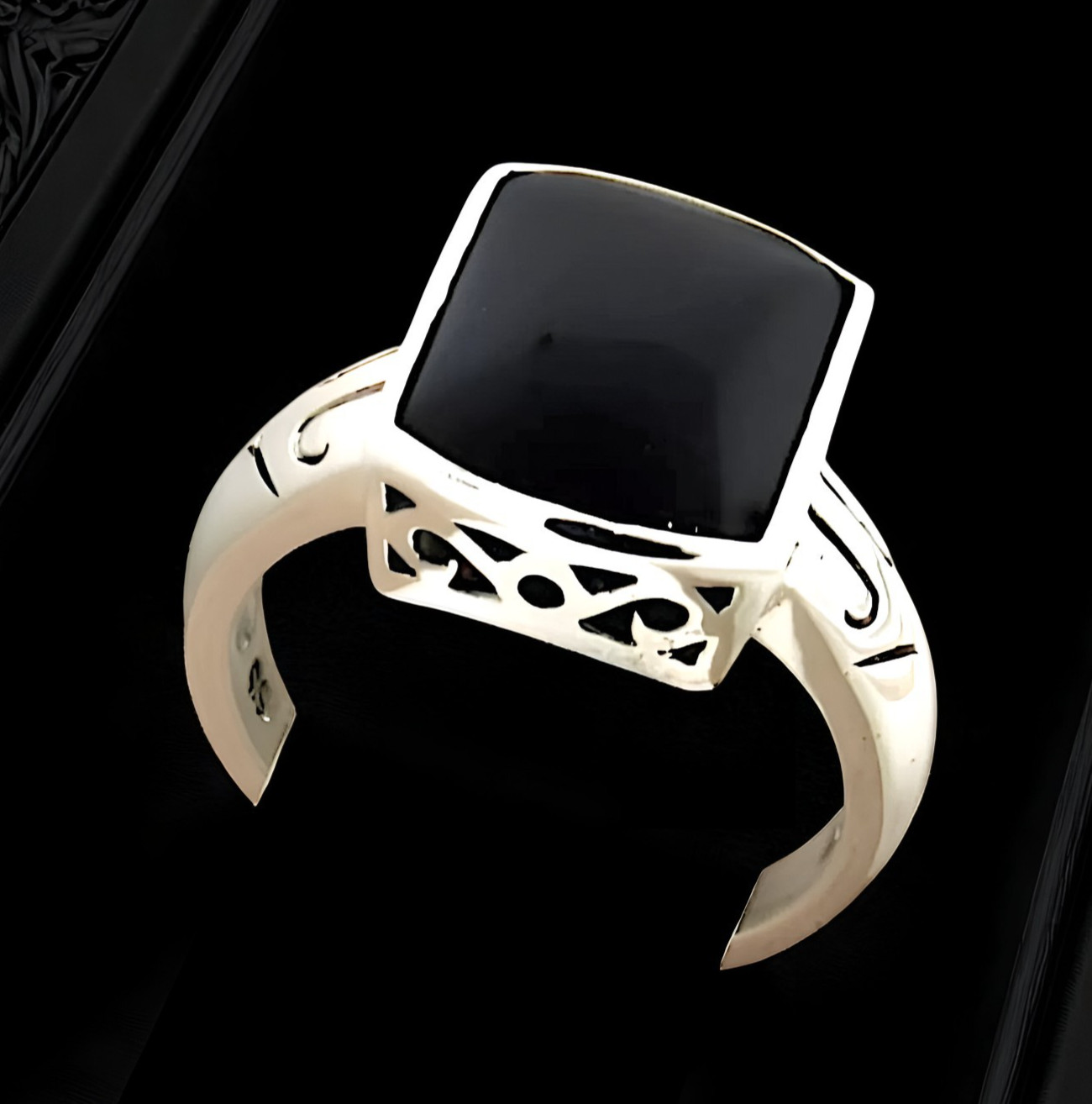BLACK AGATE VINTAGE DESIGN 925 SOLID STERLING SILVER FILIGREE RING 895