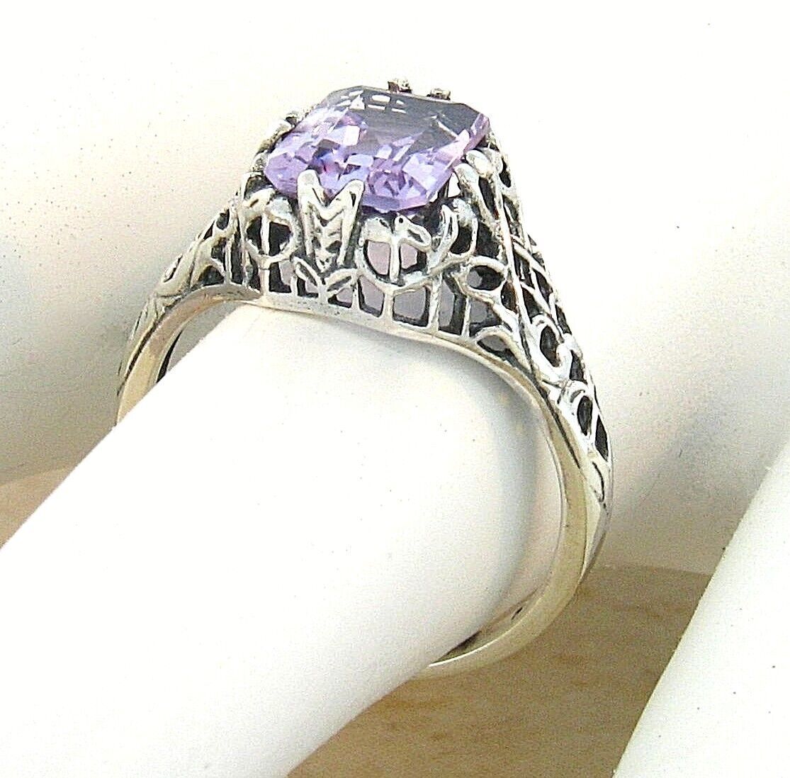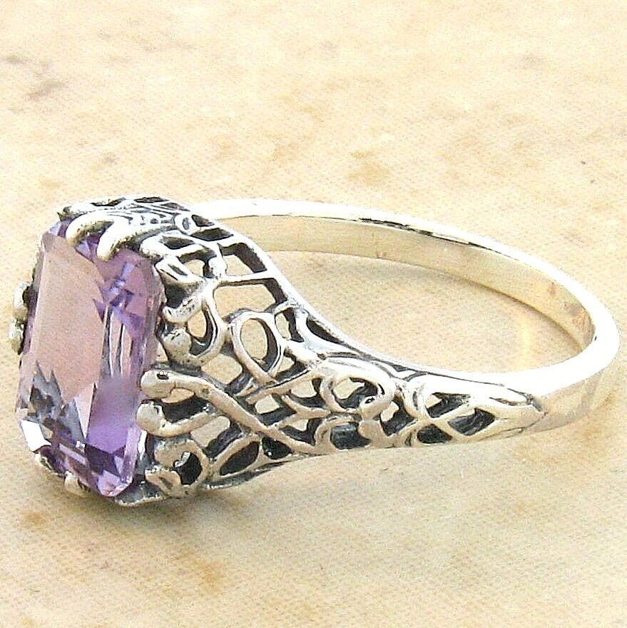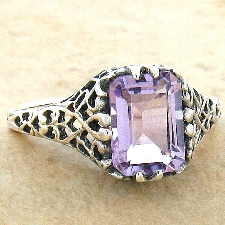 GENUINE AMETHYST 925 STERLING SILVER VINTAGE STYLE FILIGREE RING 715