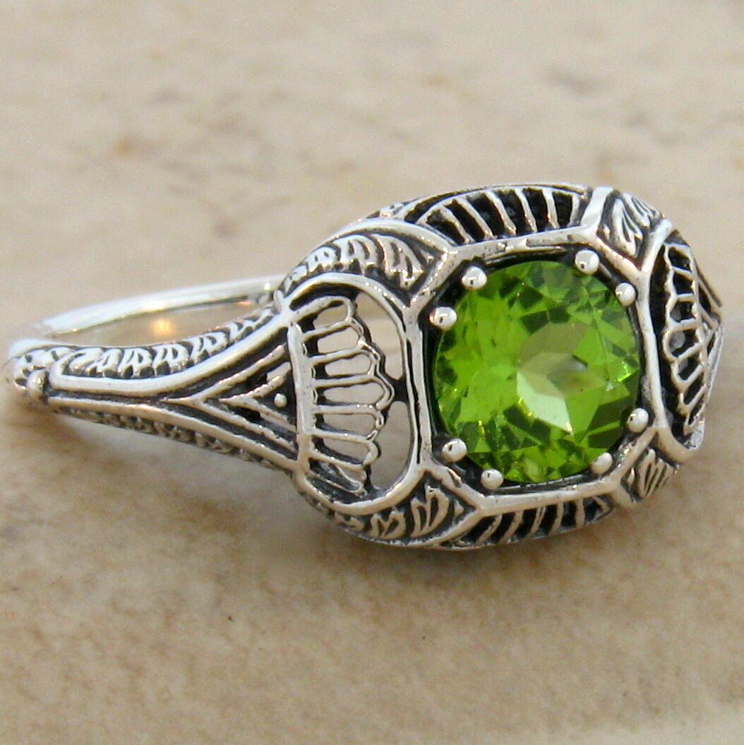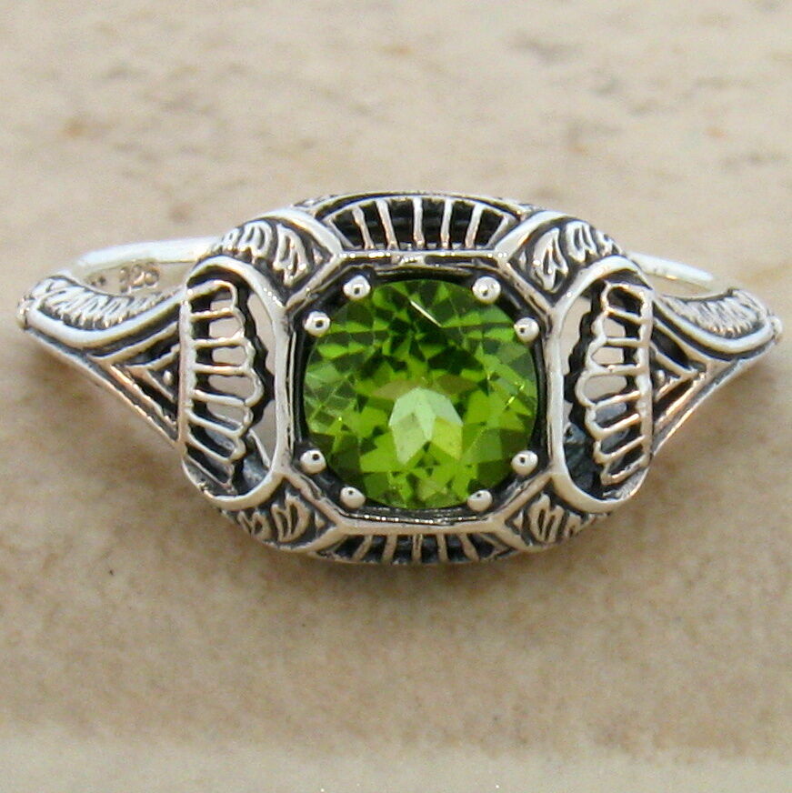 GENUINE PERIDOT CLASSIC STYLE 925 STERLING SILVER ART DECO DESIGN RING 291X