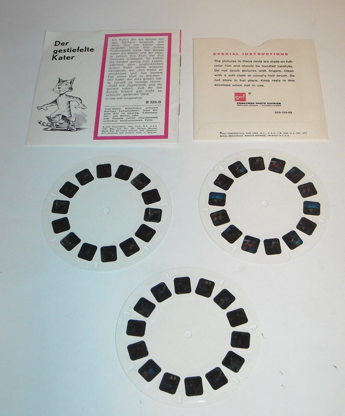 GAF GERMAN PUSS n' BOOTS COMPLETE VIEWMASTER PACKET 3 REELS with BOOKLET PUPPETS