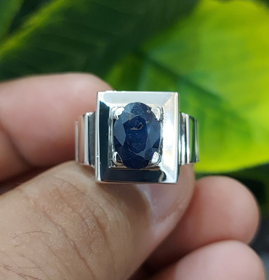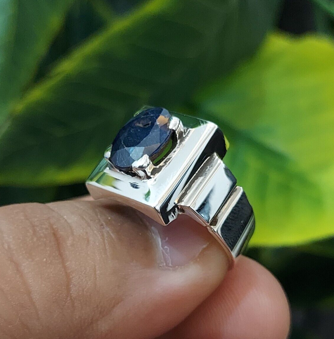 100 Natural Blue Sapphire Stone Ring Neelam Sapphire For Men Design Unique Ring