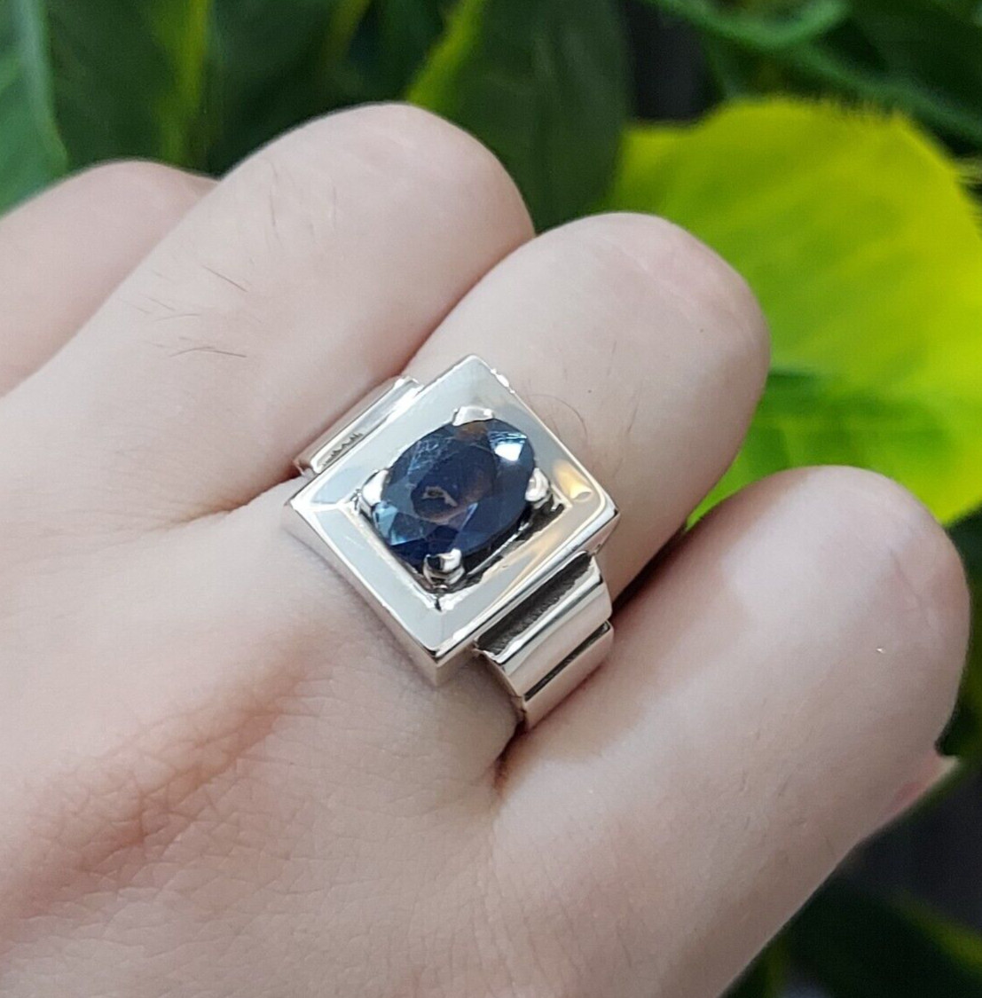 как выглядит 100 Natural Blue Sapphire Stone Ring Neelam Sapphire For Men Design Unique Ring фото