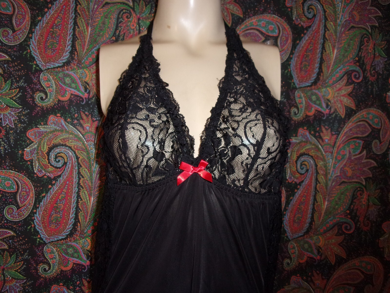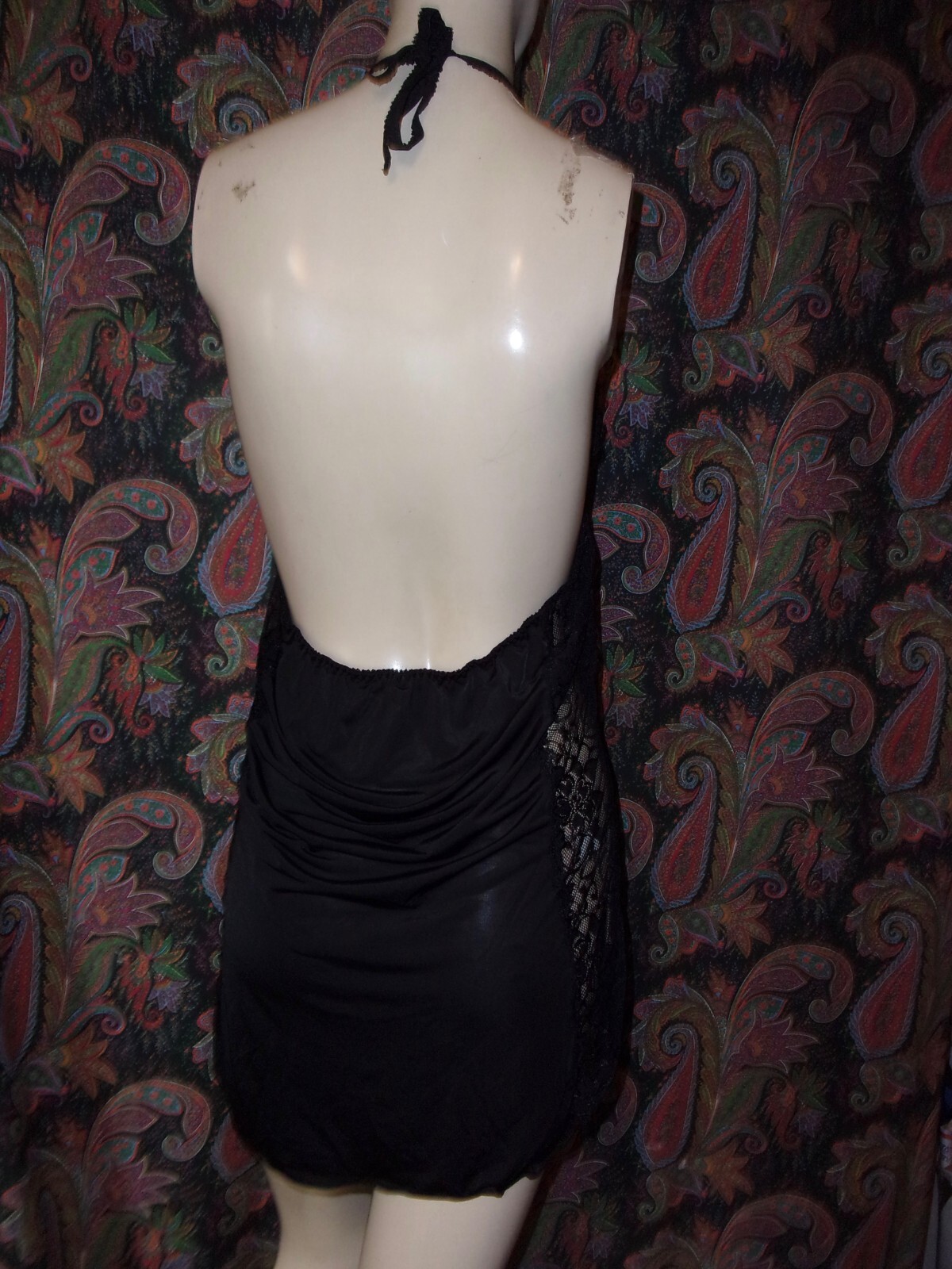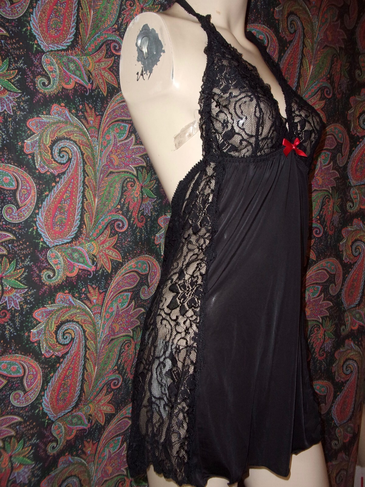 как выглядит Dreamgirl Black Knit Lace Body Hugging Halter Babydoll Mini Nighty Queen O/S фото