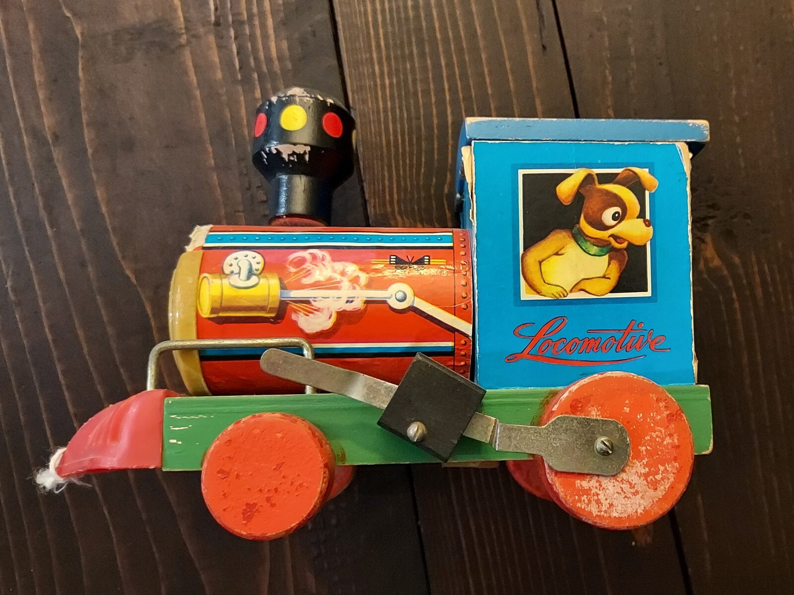 Vintage Wooden Locomotive Engine Train pull toy WP339