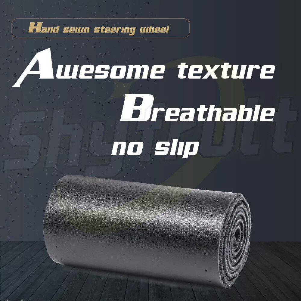 • Genuine Leather DIY Car Steering Wheel Cover Anti-slip For-15"/38 cm Black US