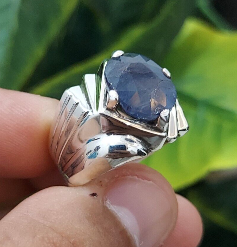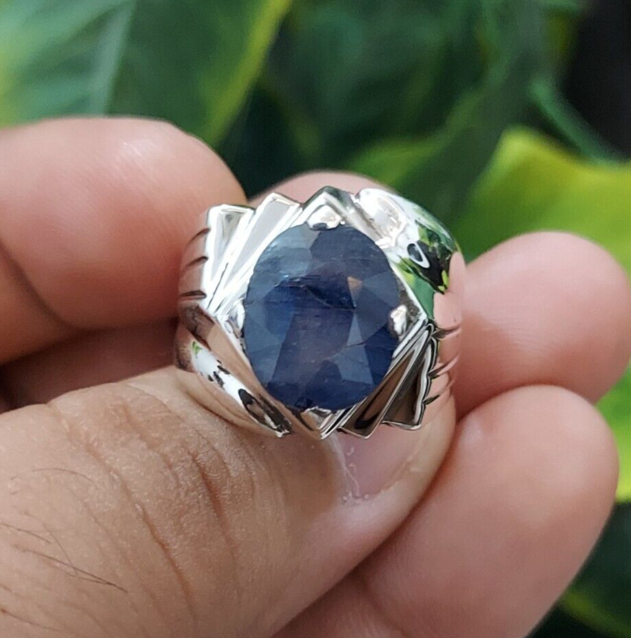 5 Carats Plus Natural Neelam Stone Blue Sapphire Stone Ring Silver 925 Ring