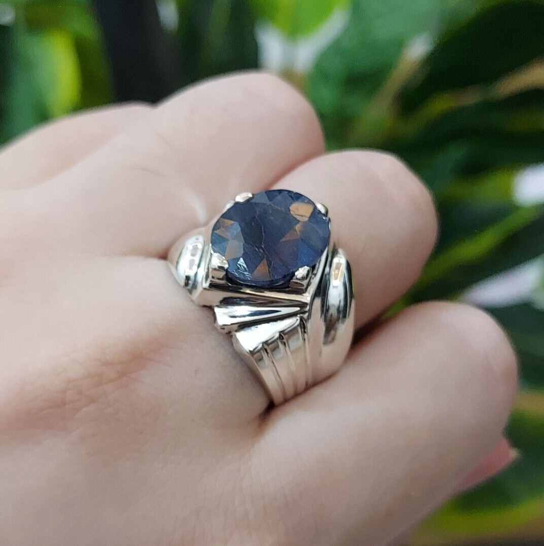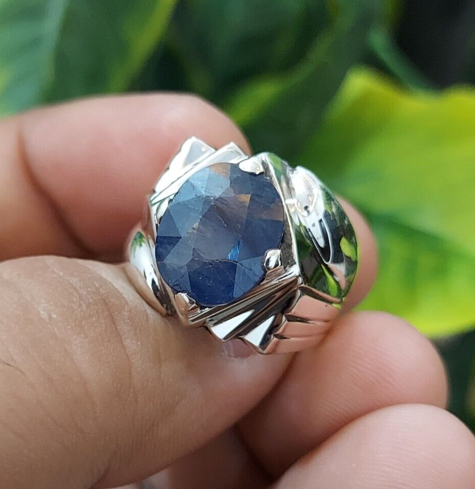 как выглядит 5 Carats Plus Natural Neelam Stone Blue Sapphire Stone Ring Silver 925 Ring фото