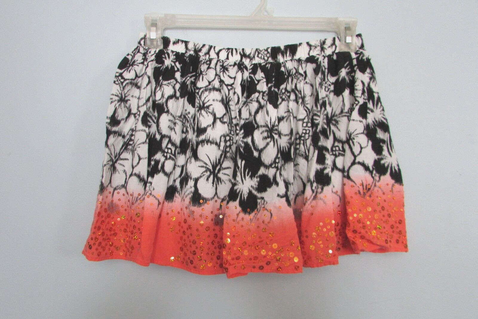 Justice Girls Black Orange Sparkly Sequined Skort Size 18 Elastic Waist EUC