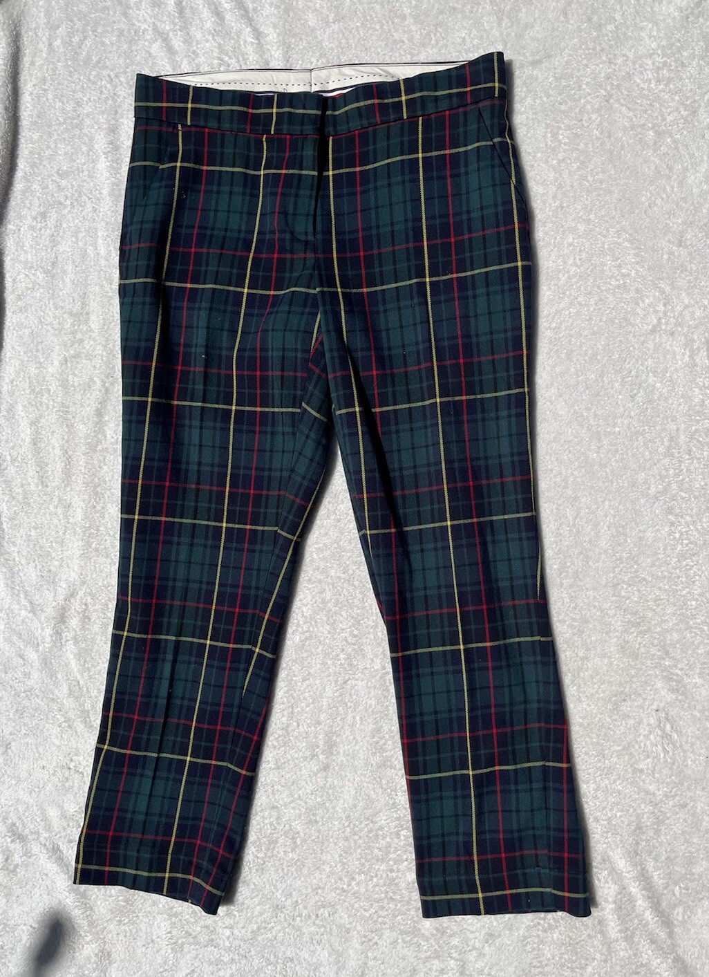 Tommy Hilfiger Women's Green Tartan/Plaid Skinny Stretch Crop Trouser Pants Sz 8