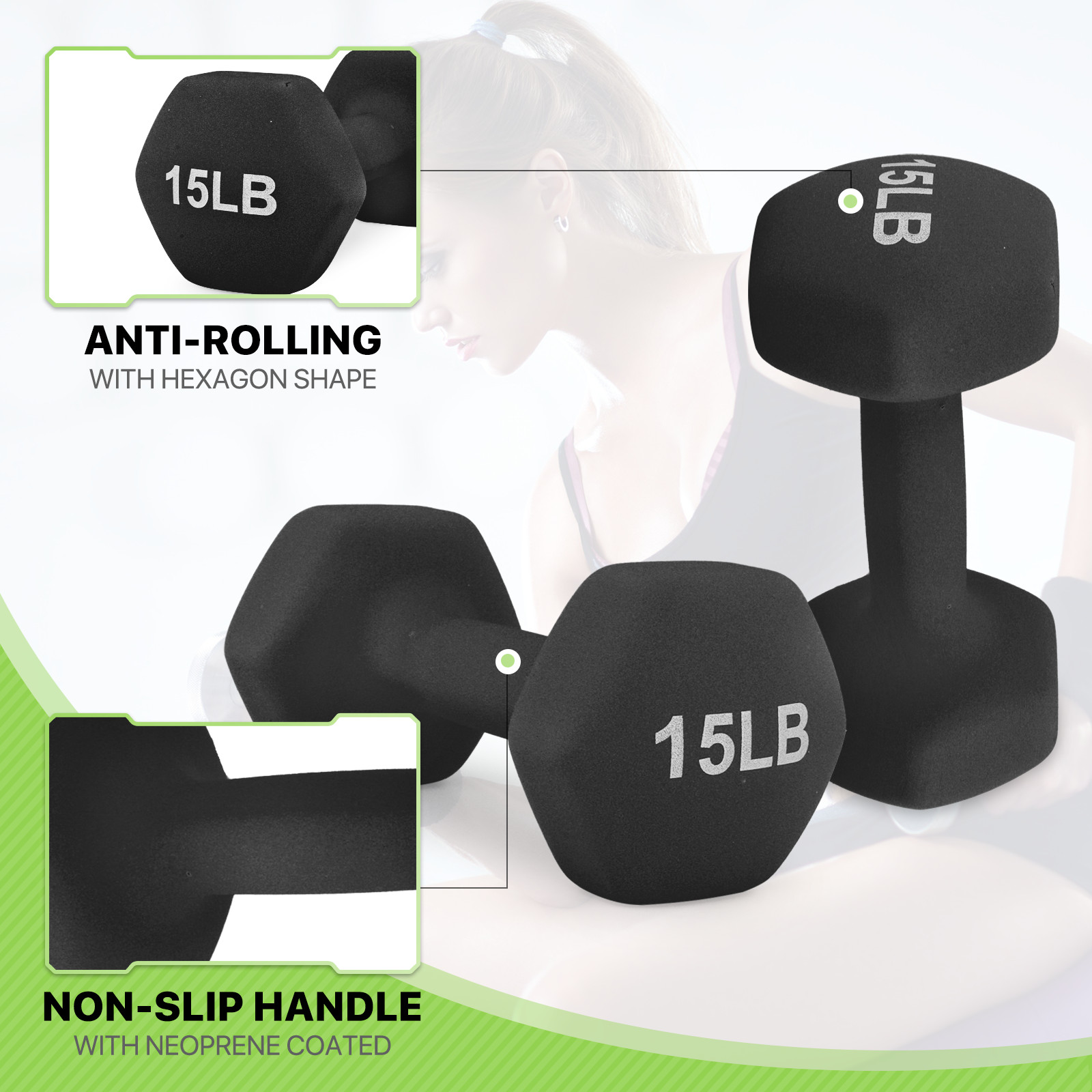 Neoprene Coated Hex Dumbbell Gym Fitness Exercise Arm Strength Training 2x 15LB