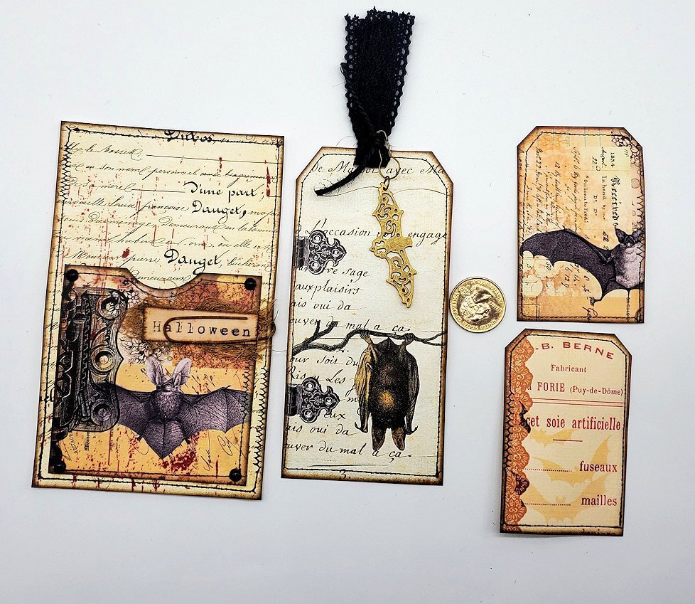 1-Halloween-Bats-Pocket-Embellishments-Junk Journal-Gothic-Linen Cardstock