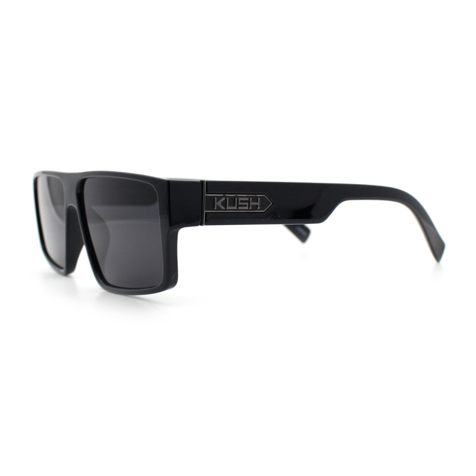как выглядит Kush Mens Bold Angle Flat Top Square Rectangle All Black Plastic Sunglasses фото