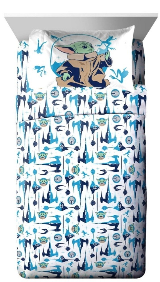 как выглядит Star Wars The Mandalorian Baby Yoda Kids 4 Piece Full Sheet Set, Microfiber/New фото