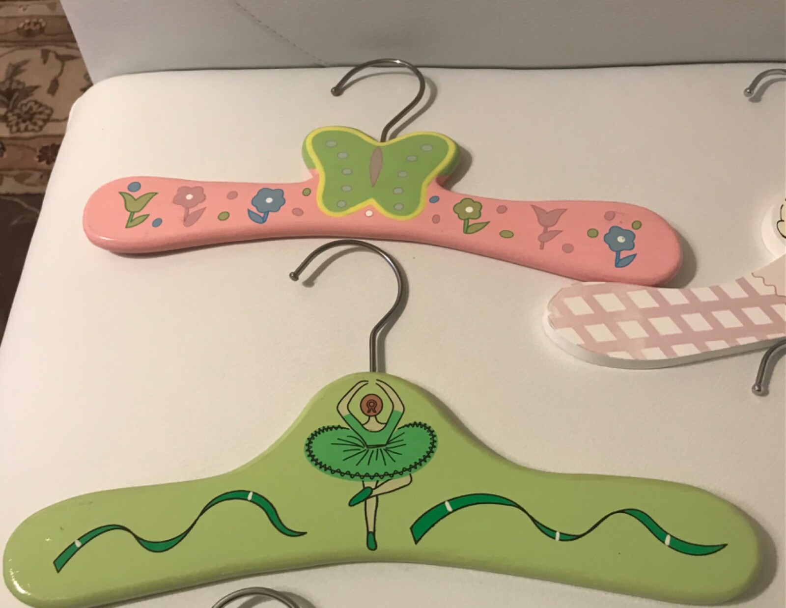 4 Vintage Hand Painted Wooden Hangers 5 plain Child Kids Wooden Hangers