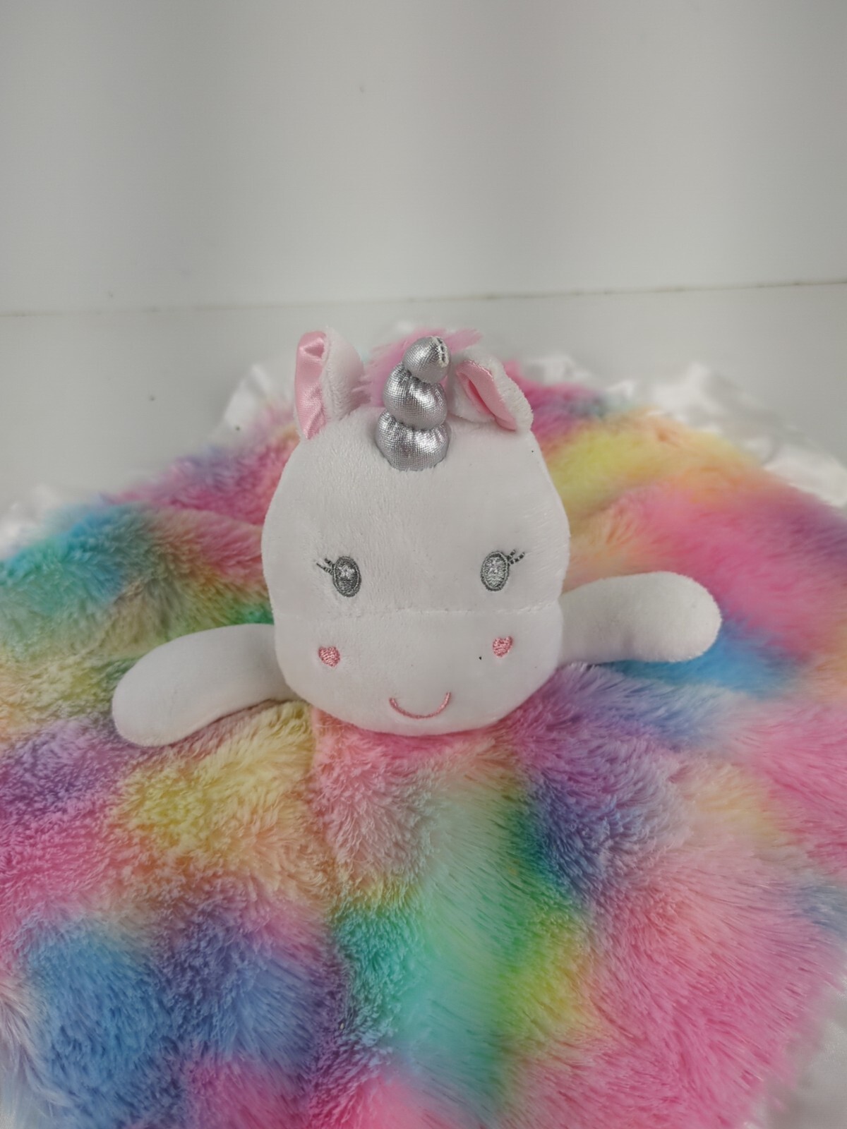 как выглядит Baby Starters Unicorn Blanket Plush Satin Security Lovey Pink Yellow Blue Green фото