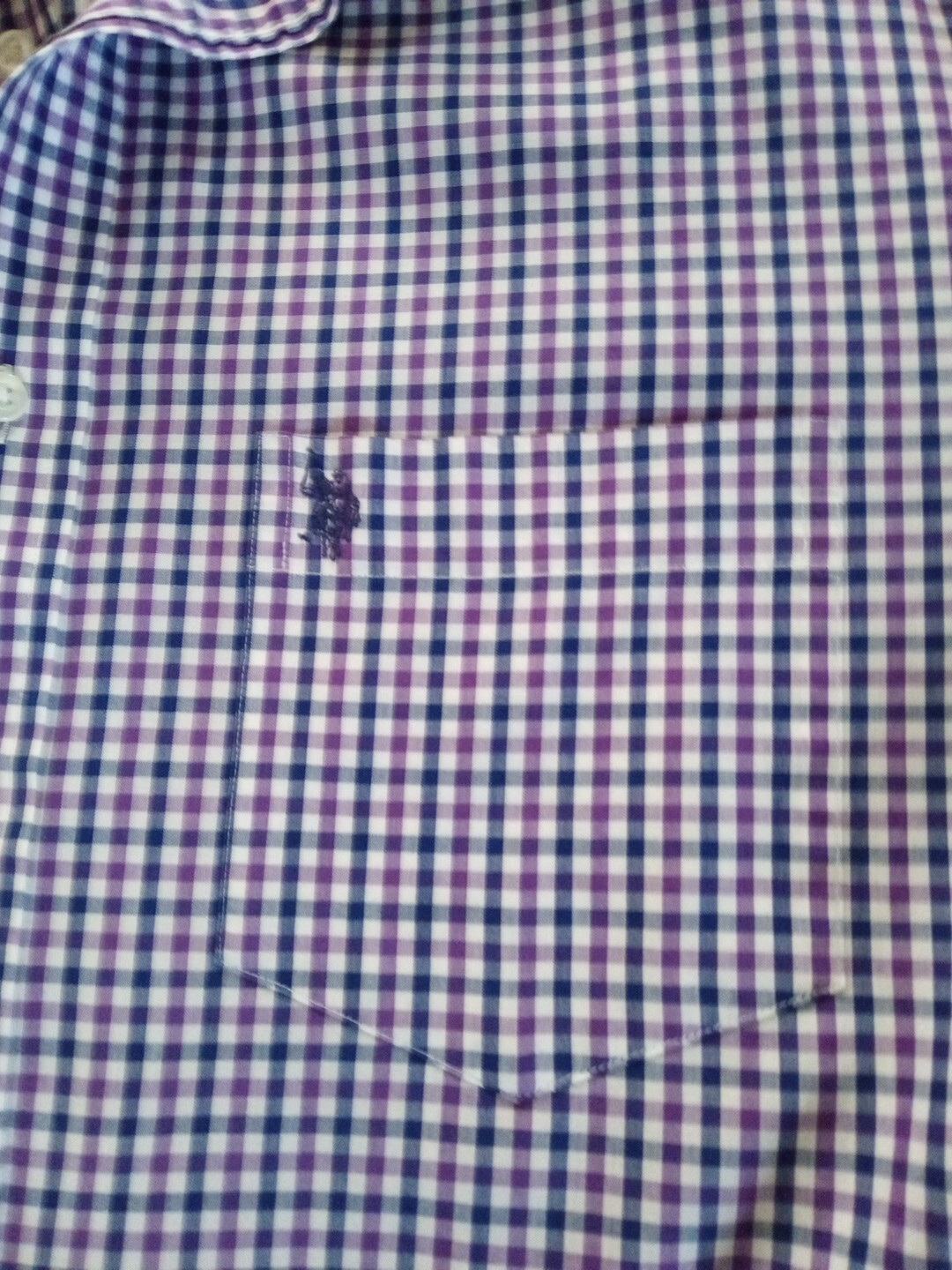 как выглядит U.S. Polo Assn Mens Dress Shirt Sz M Long Sleeve Blue Purple White Wrinkle Free фото