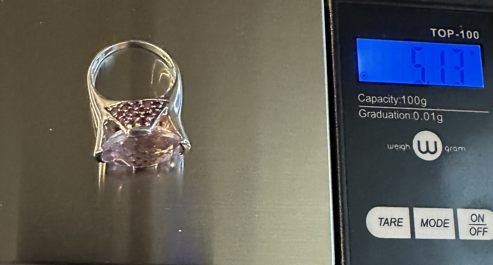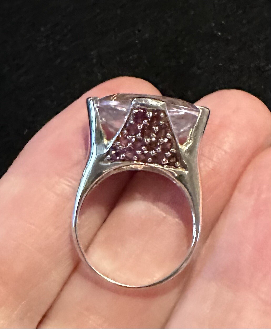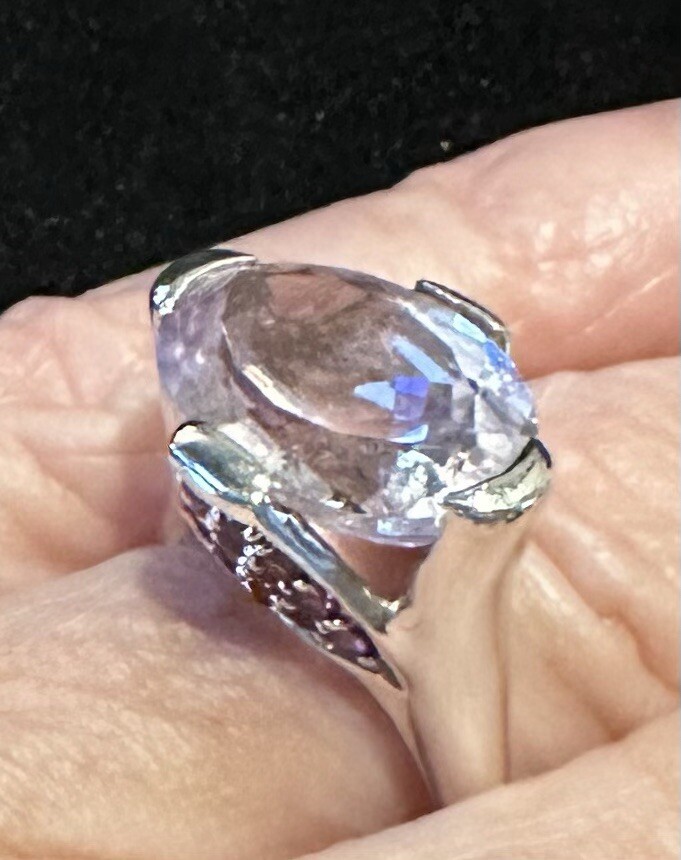 как выглядит 925 Silver Pink Faceted Glass Ring, Size 6.5 фото