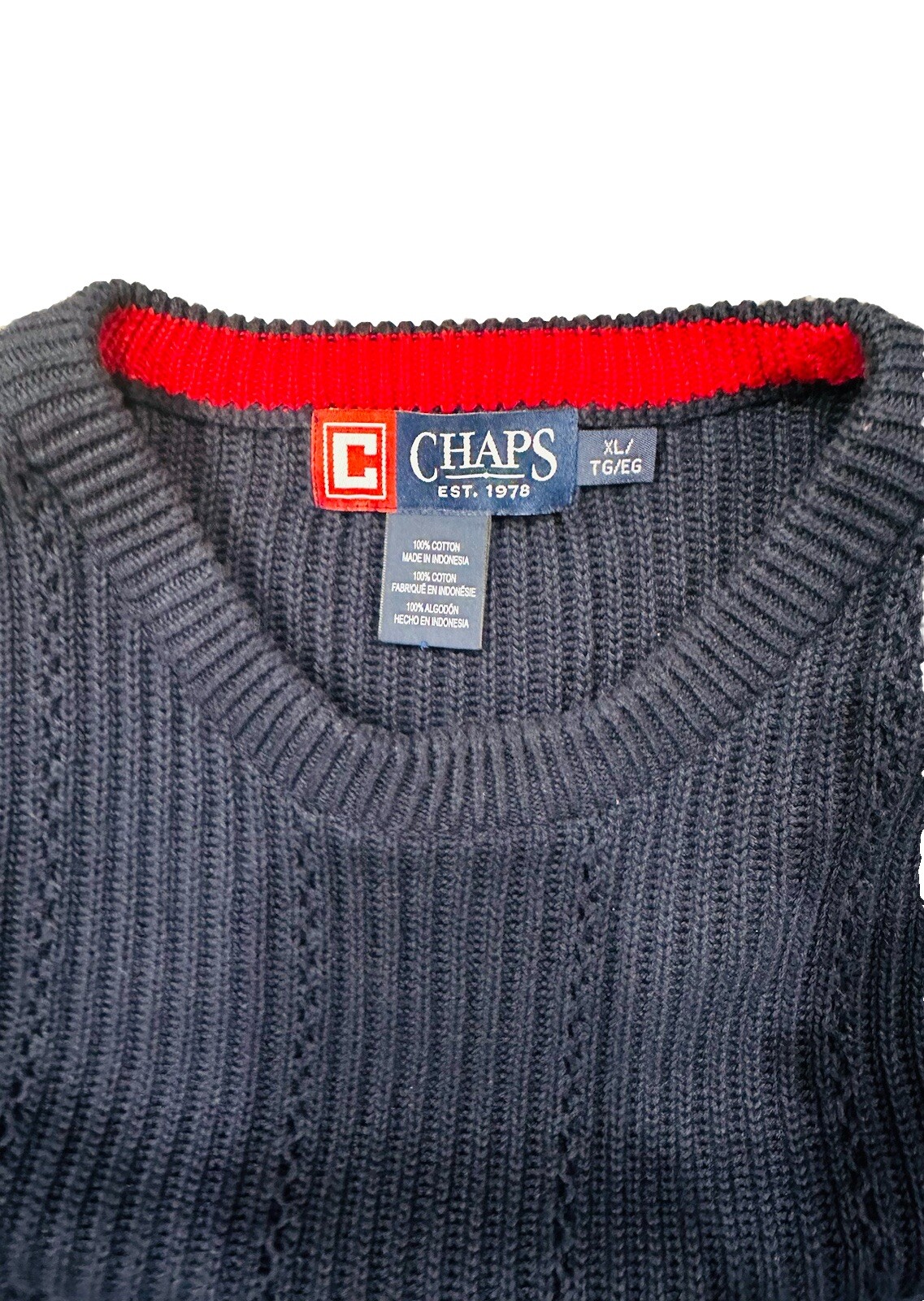 как выглядит CHAPS Polo Heavy Golf Sweater Mens XL Navy Blue Cable Knit Crewneck Pullover фото