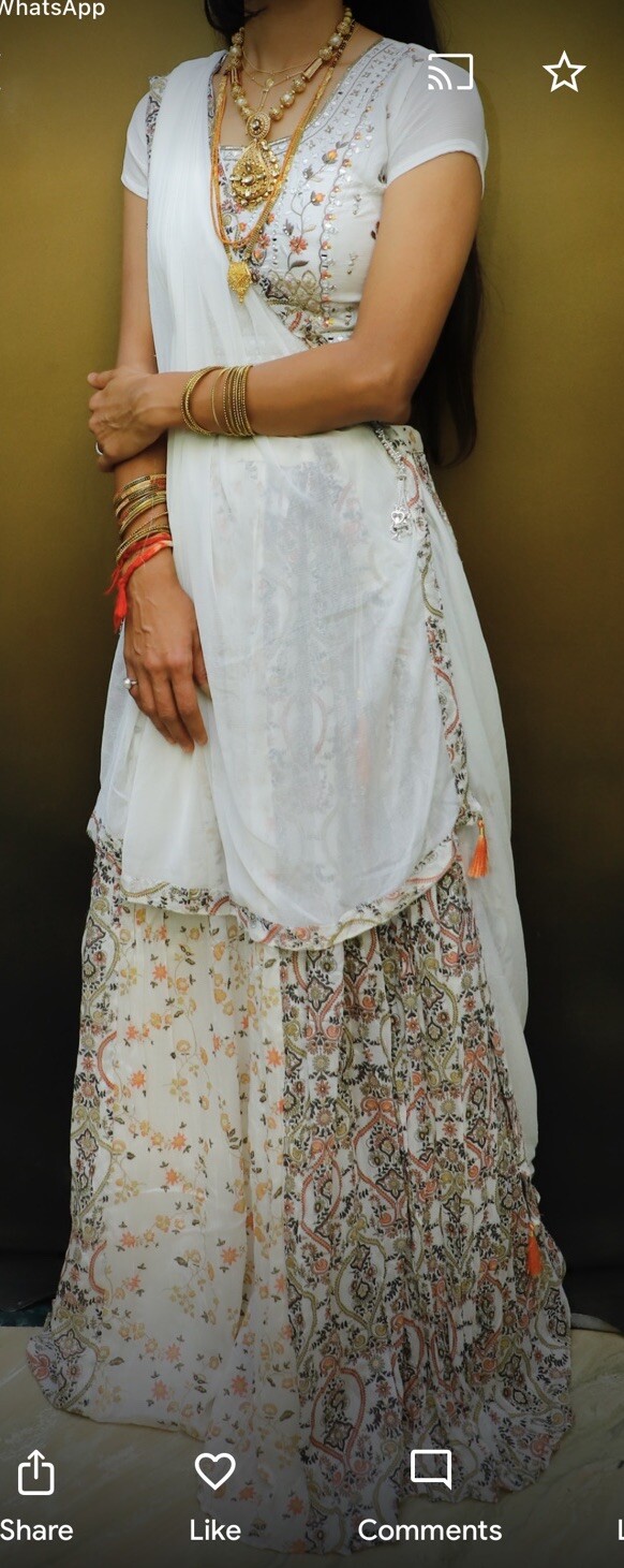 Designer White Chaniya Choli Lehnga Printed Very Unique Look