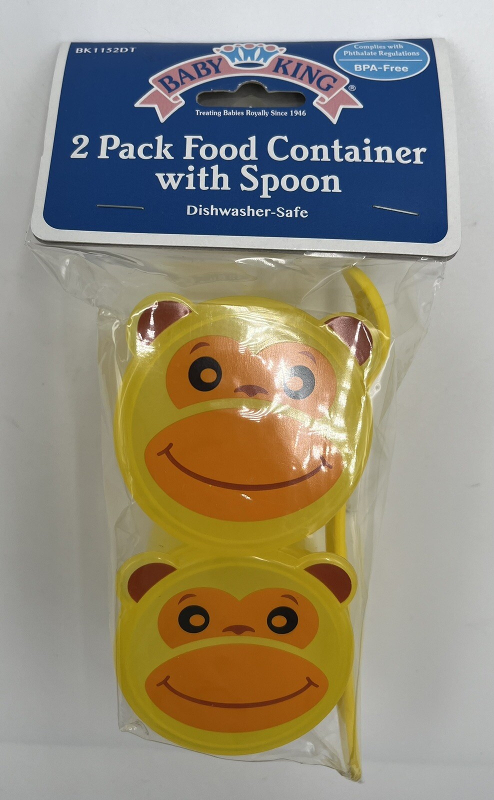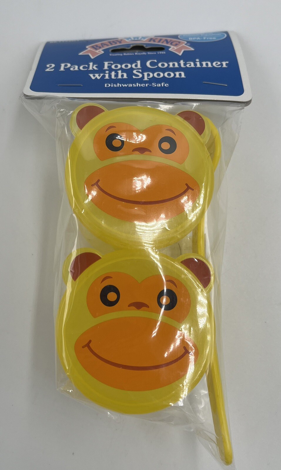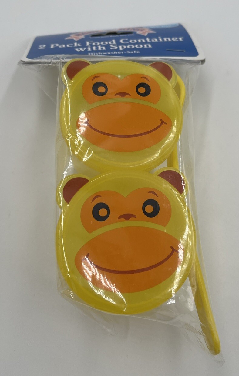 Baby King 2 Pack Food Container with Spoon BPA Free Yellow Monkeys Design