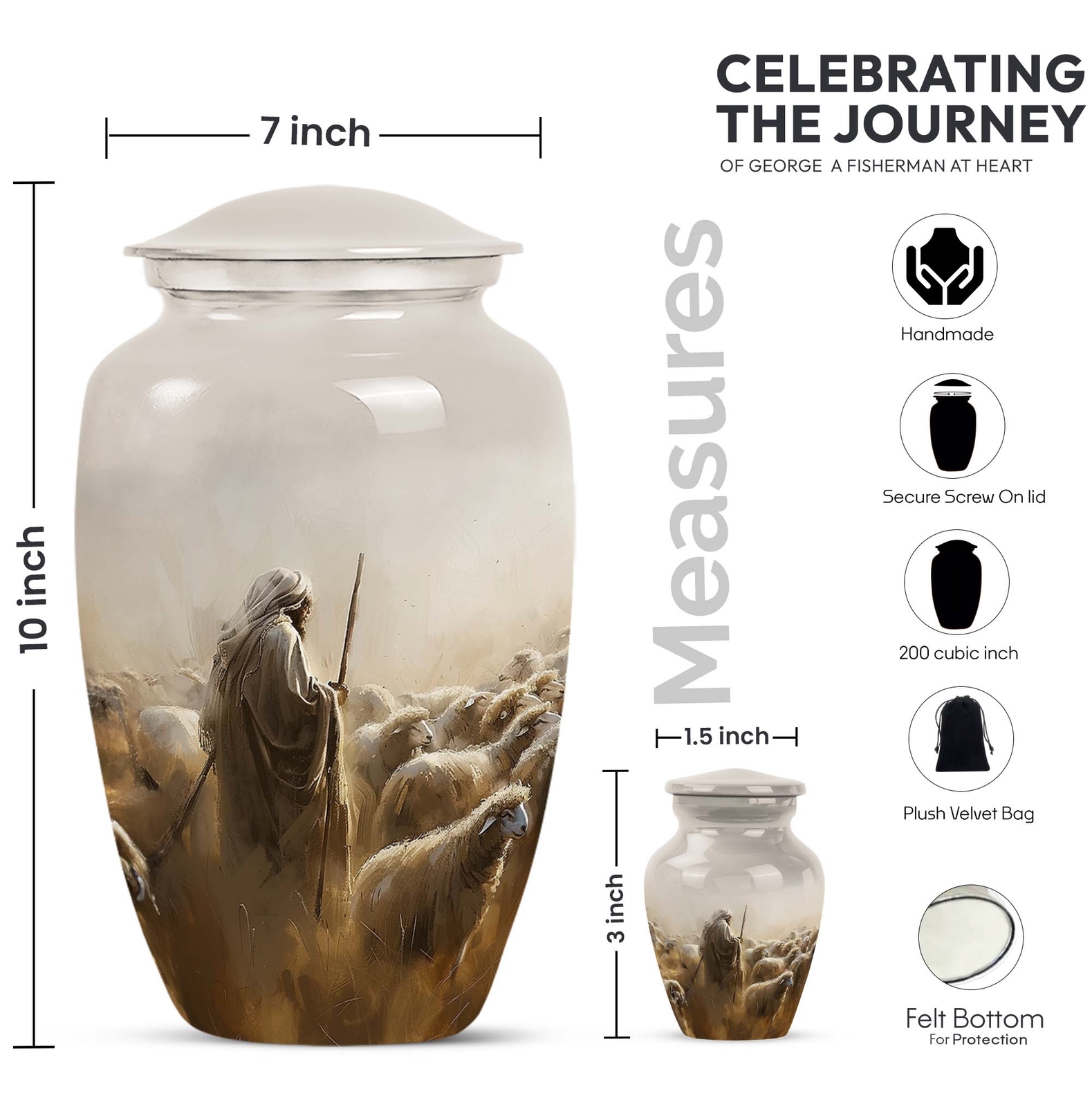 • Shepherd Funeral Urn Ashes 3 Inch Urn Human Ash Adult Female